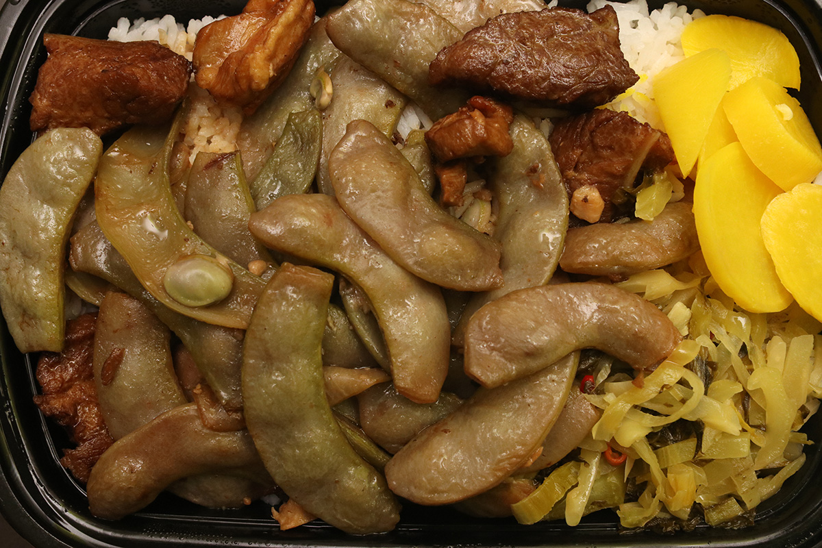 i got a bit of a second wind, so after coming home to collect the things i bought in boston, i rode to the cafe. in return my mother packed me a bento box for dinner (some cooked hyacinth beans with pork) as well as some pineapple.