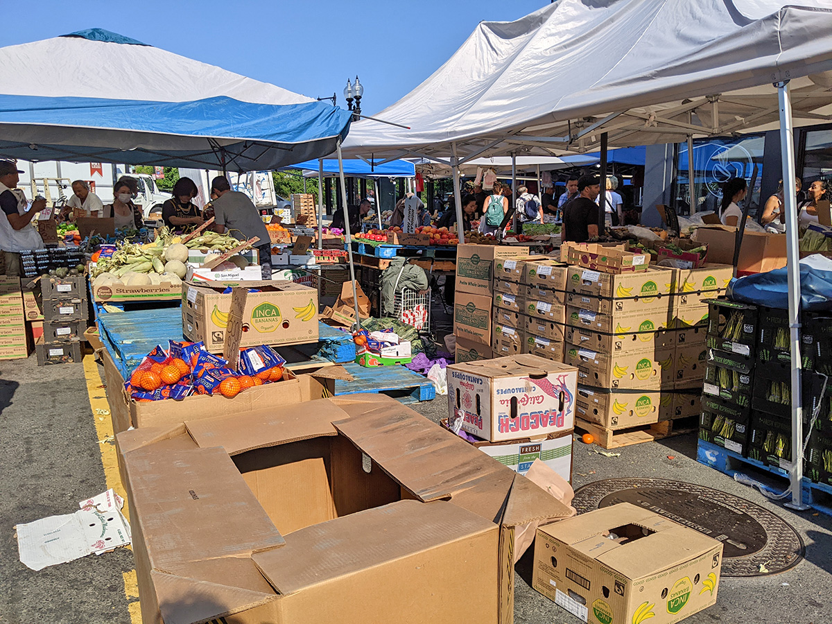 next i went to haymarket. honestly, there was nothing there i wanted. i walked the place 3 times without buying anything, finally got 2 boxes of strawberries ($3), 2 pineapples ($3), and a sleeve of garlic ($2). i was looking for baby cucumbers, haven't seen them here in a while. one vendor was selling rainier cherries for $4/lbs., i was going to get some but i forgot. no longans this time either. pickings are so slim, not sure if i'm coming back next week.
