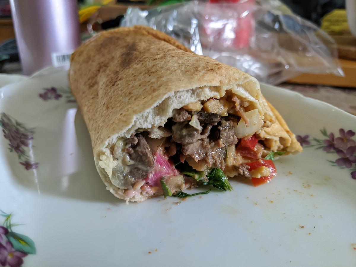 once the procession got to mass ave, i stopped following it, and instead went to get some lunch at aleppo's place (formerly moody's falafel). i got one of their deluxe pita wrap which was $15. i retrieved my motorcycle from norfolk then rode home.