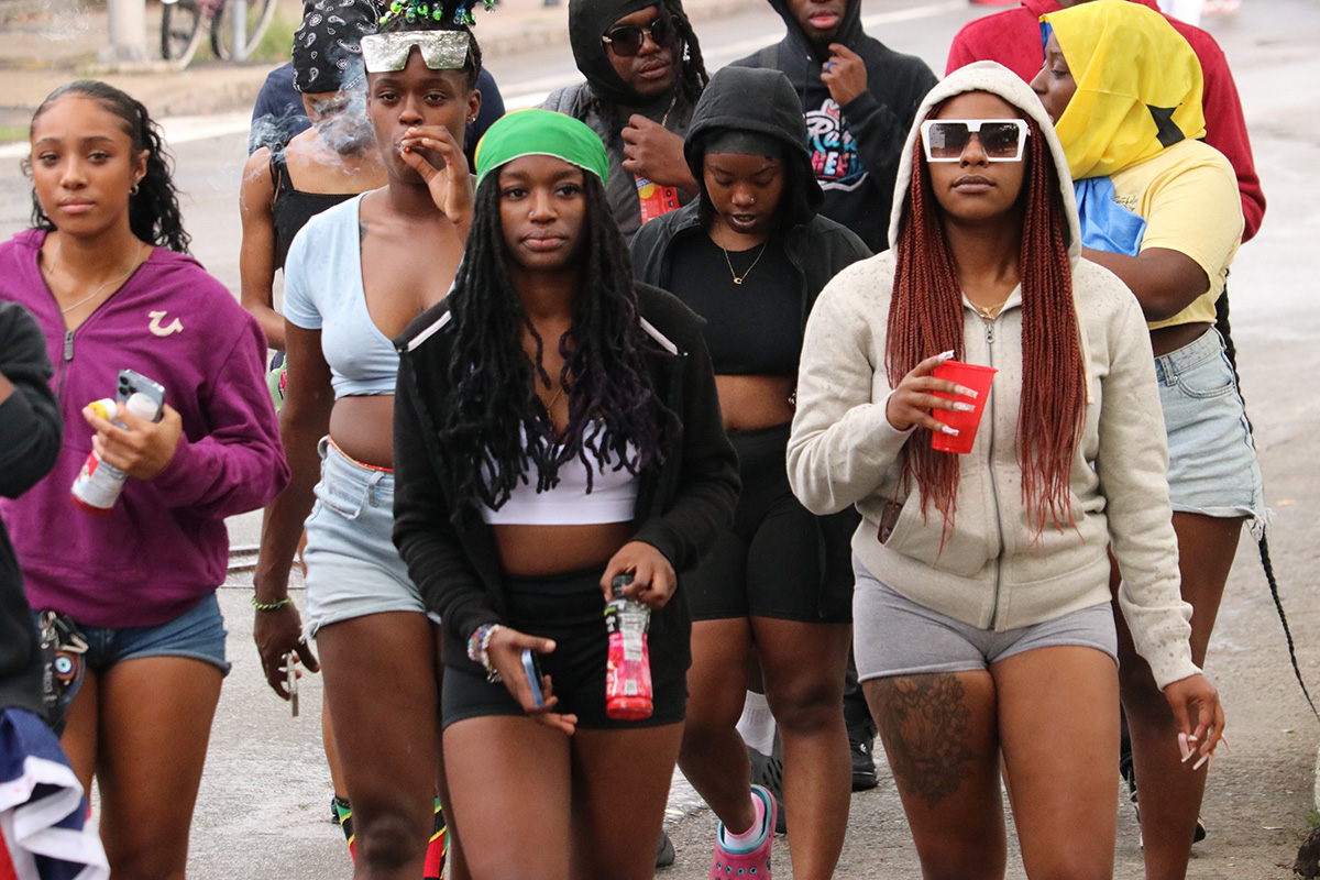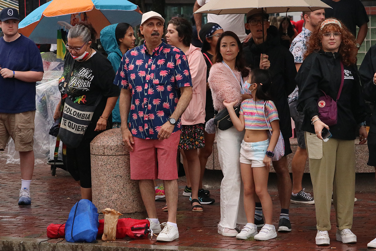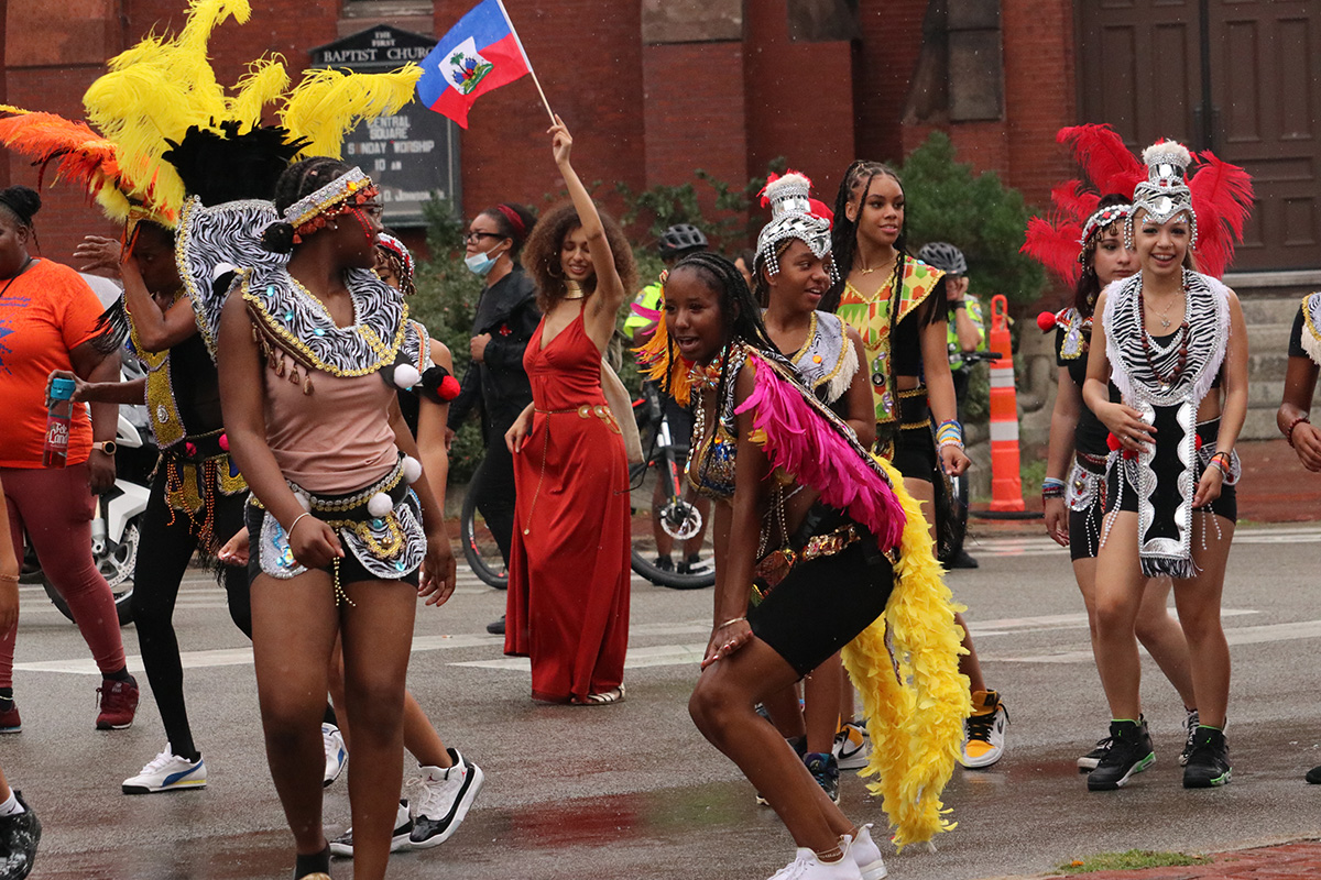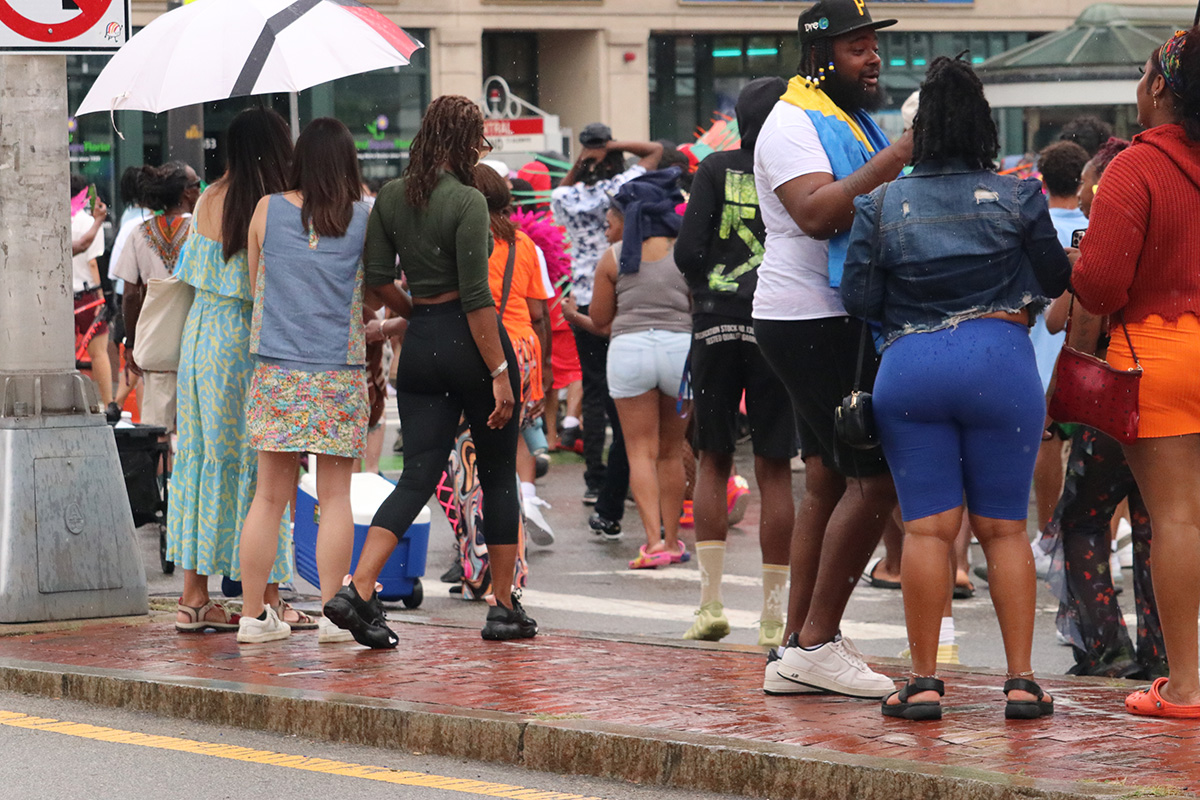 i should've known something was wrong given how few people i saw walking down river street. a group of thrill seekers even asked me if they missed the parade since there was hardly any people. by the time i made it to the staging area, my fears were realized. just like at the boston carnival parade, the cambridge carnival organizers must also have some beef with the dancers and musicians regarding money. so like the boston parade, they also decided to boycott the cambridge parade as well. these things used to be crazy! but now there was just a small group of children and seniors, followed by a small pickup truck with some speakers and an emcee/dj, followed by a handful of costumed dancers. it was pretty sad. i looked at my watch, maybe i can still make gametime at 1pm to watch the patriots game. there weren't even any politicians (in an election year no less), not even the cambridge mayor came.