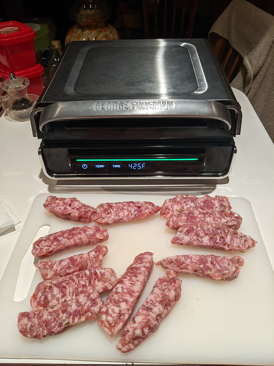 i stumbled into the kitchen to make dinner around 9pm. after slicing the sausages in half, i cooked them in the smokeless foreman grill (7-8 minutes). while that was happening, i prepared the vegetable ingredients: red onion, cucumber, olives. after the sausages finished cooking, i cut up two into smaller pieces and stuffed them into my pita bread along with romaine lettuce, tzatziki sauce, feta cheese, and the remaining vegetable ingredients. i overstuffed my pita which is a problem i have with any kind of wrap foods. the italian sausages were good, but didn't seem to fit with the pita. if i had to do it again, i'd buy a package of chicken sausages instead. i washed everything down with a 12 fl oz. bottle of strawberry watermelon polar seltzer. i felt energized afterwards.