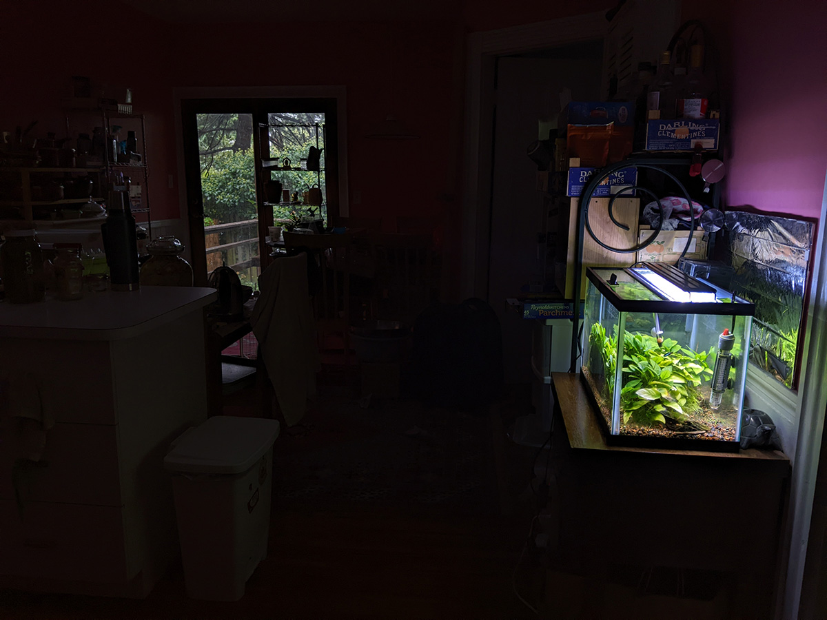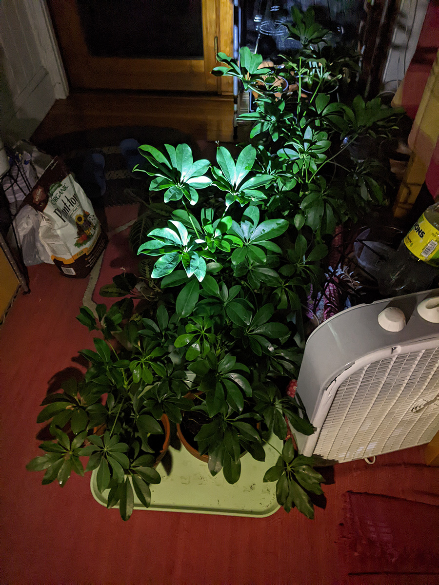 temperature tonight was going to drop into the 50's, maybe lower. fearing for my plants, i brought them all inside. i need to do the same tomorrow at my parents' place, where it's going to be even colder tomorrow night, temperature in the 40's.