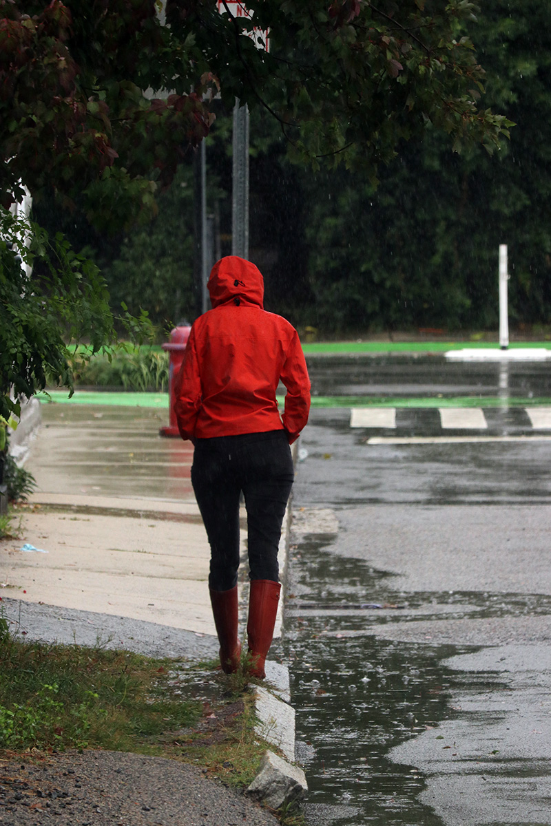 it was still dark when i got out of bed even though it was late morning. earlier i heard the rumbling of thunder and the rain was still pouring outside when i looked out the living room window. there was a brief lull and i thought maybe i could sneak in a run, but the sky went dark again and the rain began anew. by the end of the day, the official rainfall amount for boston was 0.75".