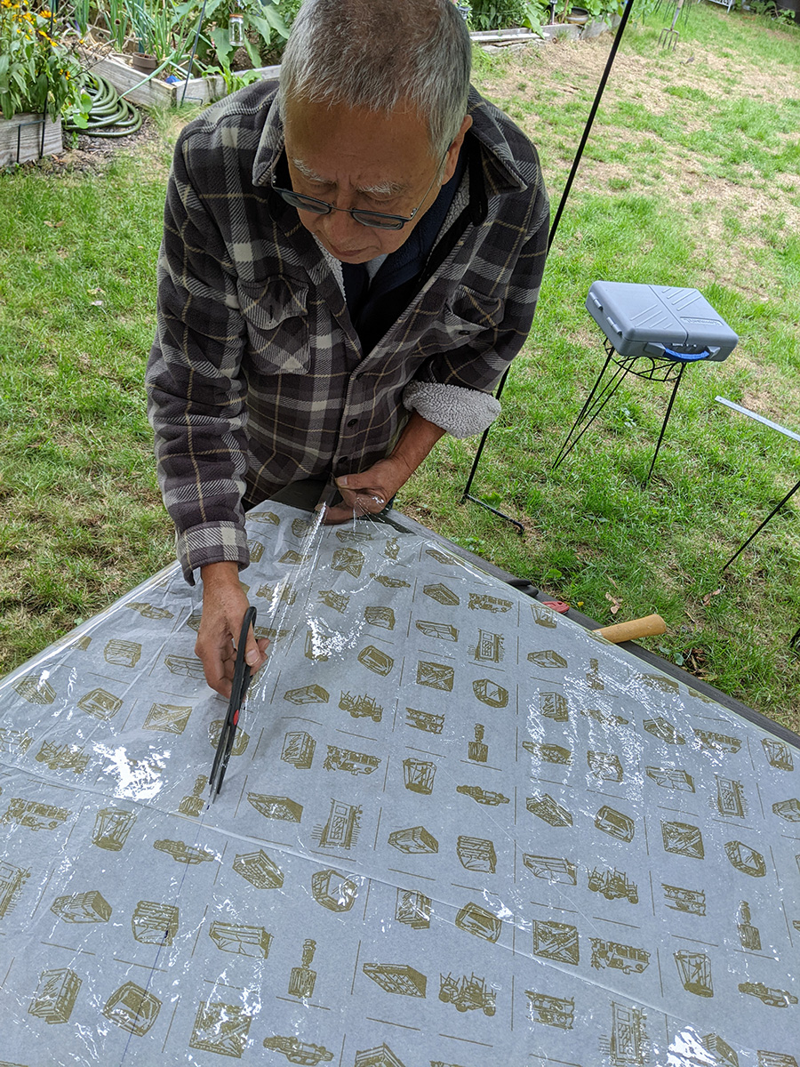 dare i say the rivet work was the easy part? because then piecing the whole cloche together was the greater challenge. the original cover for the cloche was a rigid sheet of clear thick plastic (the material you use to make clear visors, or face shields). i couldn't source this material so i got the next best thing, which was a soft vinyl sheet, the kind of material they use for making boat windows, or shower curtains. working with the soft vinyl was like trying to build something with cooked noodles. it was challenging trying to put them into the metal brace and secure them. but eventually we got it done, even though the cloche now sort of sags because i'm using a soft cover instead of a rigid cover. but it sort of works, and at least that's one project i can finally clear off my plate (and declutter the sunroom, where these cloche parts had been sitting unassembled).