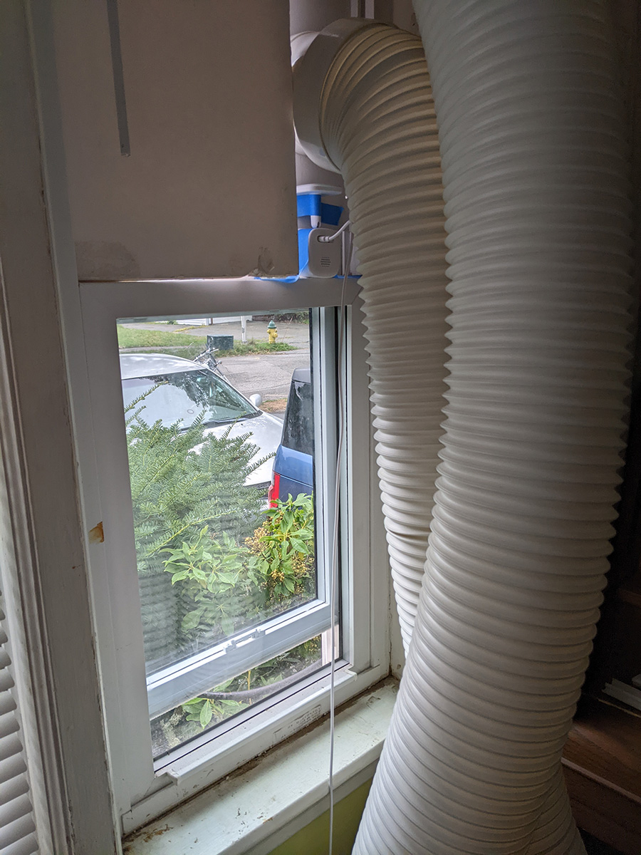 we finally took down the living room air conditioner. it's a floor unit, so all we did was remove the two vents from the window and wheel the unit into the sunroom for storage. the air conditioner was on a smart plug. when i removed the smart plug, i noticed one of the prongs had melted both the plug and the surge protector. good thing it didn't set the house on fire!