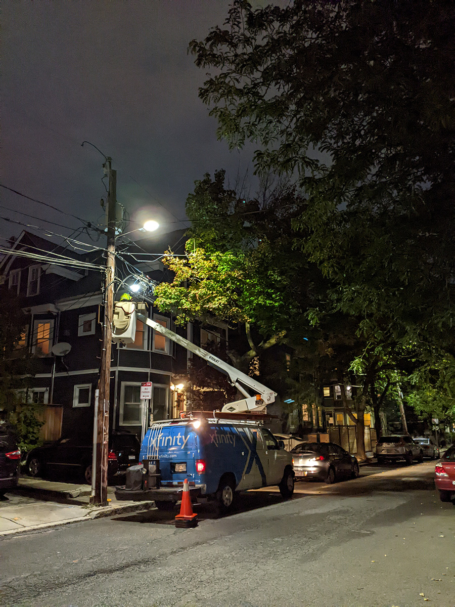 i spent the rest of the evening in communique with comcast/xfinity, whether through their online chat, automated help line, or live calling with an agent. having dealt with cable companies for decades, i can tell you it's usually pretty futile calling, and most problems don't get fixed, the best they can do is make an appointment with a technician. which is what happened to me, though my appointment isn't until tuesday morning, so technically i can be without internet service for another 2 days. i'm hoping this gets resolved before then, hopefully other neighbors are also calling comcast/xfinity tonight.