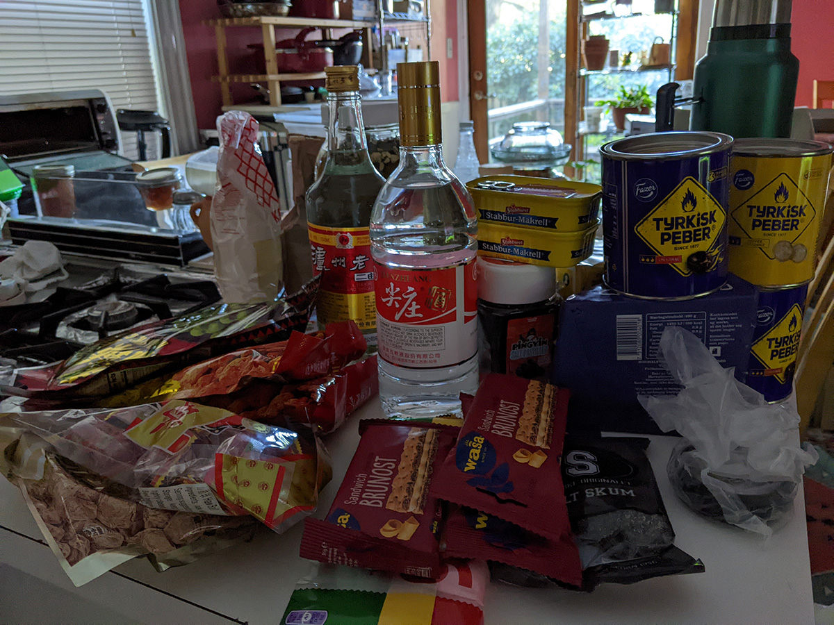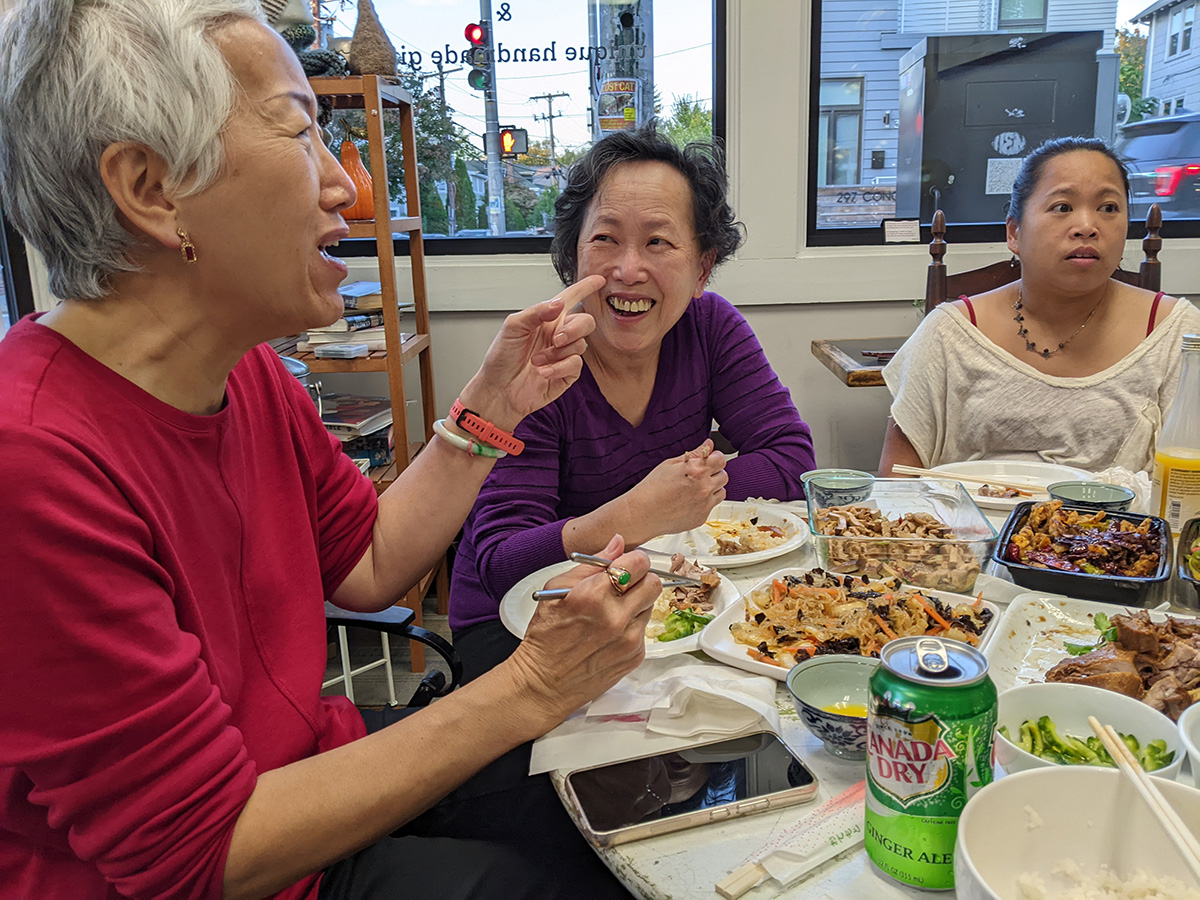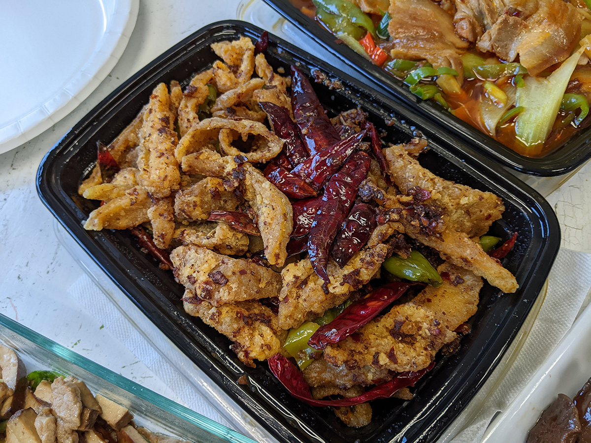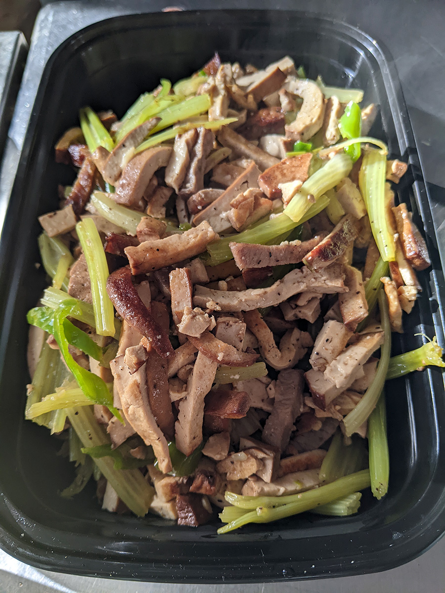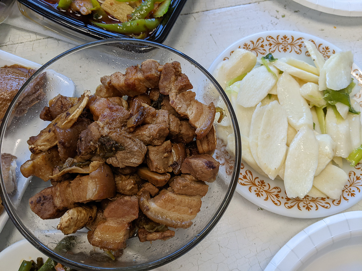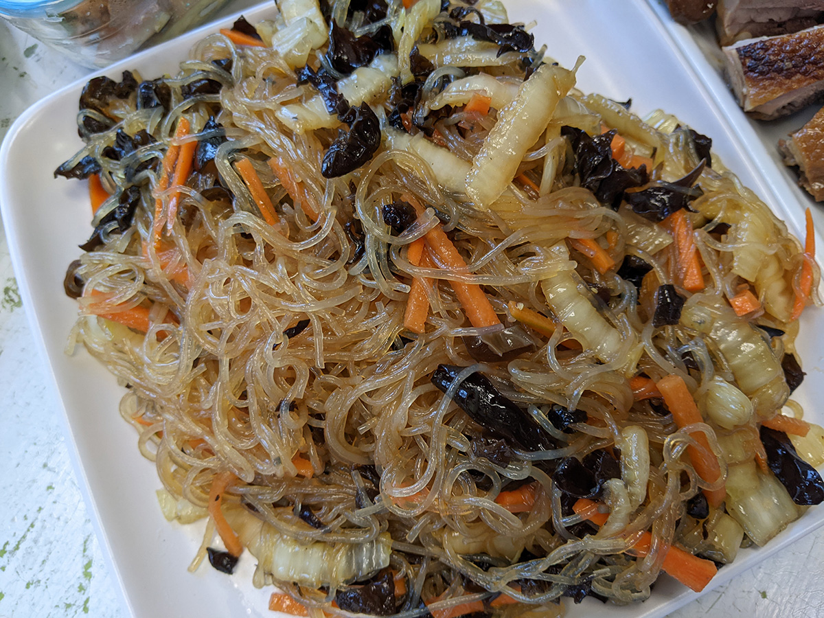 my godmother came with some braised duck along with a few other dishes. jack contributed a cake while alex gave my parents a bottle of chinese wine. we got dried-fried pork intestine and dried-fried smoked ham from zoe's. we closed an hour early so we could have dinner. a long-time customer actually knocked on the door and my sister and i stopped eating to prepare a bento box for her.