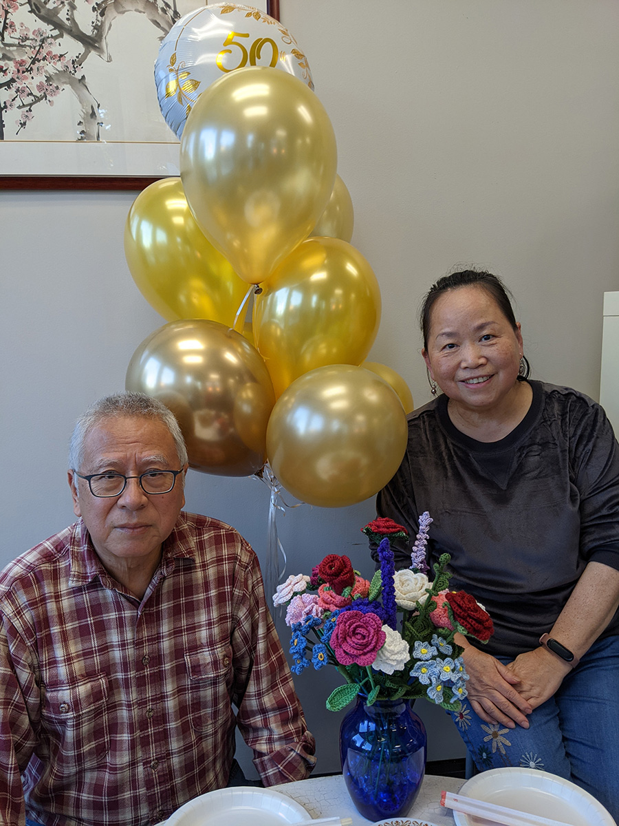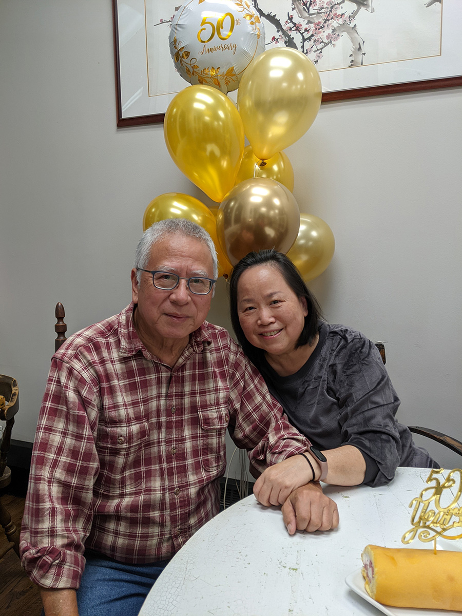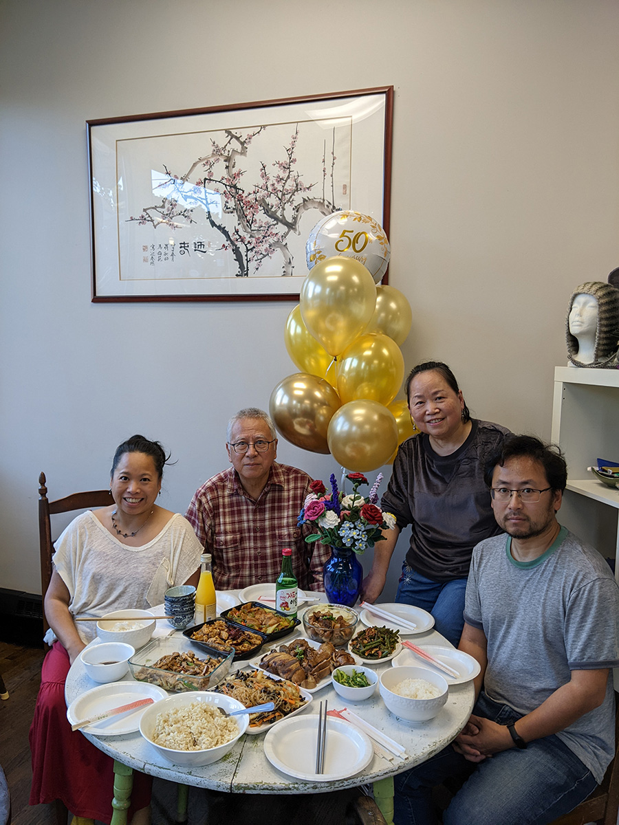 when my mother started making food for dinner, i couldn't keep the secret any longer and told her that my godmother planned on surprising them with some 50th wedding anniversary food, which she was going to bring right before closing. my godmother told me about it last week, and wanted me to make two dishes to add to hers, until i told her i would be in new york for most of this week. instead i said we could get some chinese takeout from zoe's, get a few dishes that my father really liked. my godmother asked if my sister would be willing to bake a cake, but when i asked my sister, she got really annoyed and said the dinner should be on friday, the actual day of anniversary. i told her the reason why we were doing it on thursday was out of politeness, because my parents might have their own plans friday. my sister said that was impossible. my sister then contacted my 2nd aunt to call my godmother and have the dinner rescheduled to friday. i found out and said we would still have the dinner on thursday, so in retaliation my sister said she wasn't coming (and naturally no cake). it was all too much drama, for something i didn't like doing: keeping secrets from my parents. i was tempted to just tell them last week. anyway, my sister contacted me today, sheepishly asking when we were getting the takeout, and asking if she should get balloons. i told her she could go pick up the takeout if she wanted (saving me some time, since i was at the cafe working), but not do anything else. since i didn't specifically tell her not to get balloons, she heard my message as, "okay, get balloons." a few hours later she asked me where to put them.