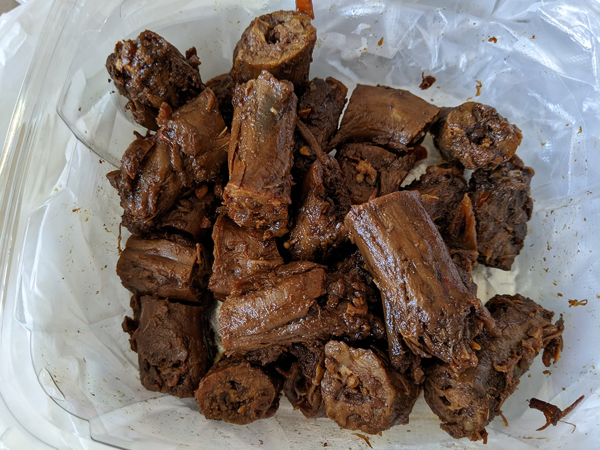 since i was supposed to work the cafe yesterday but couldn't because i was still traveling back from new york city, i worked today. i brought the two bottles of chinese baijiu and the box of braised duck necks. my mother was excited to try the duck necks, and was shocked when i told her how much it cost. i was afraid it wouldn't be very good but it turned out to be the spicy variety, which is my mother's favorite.