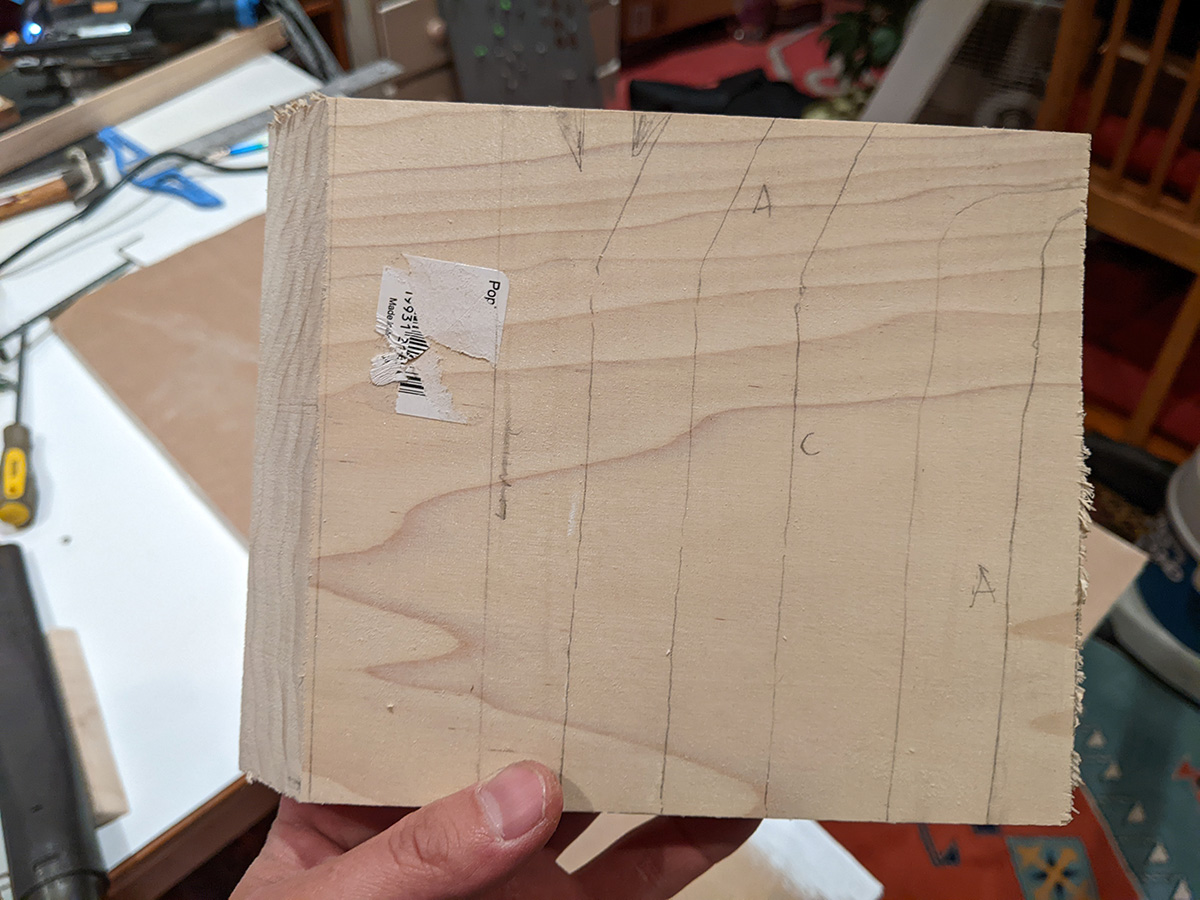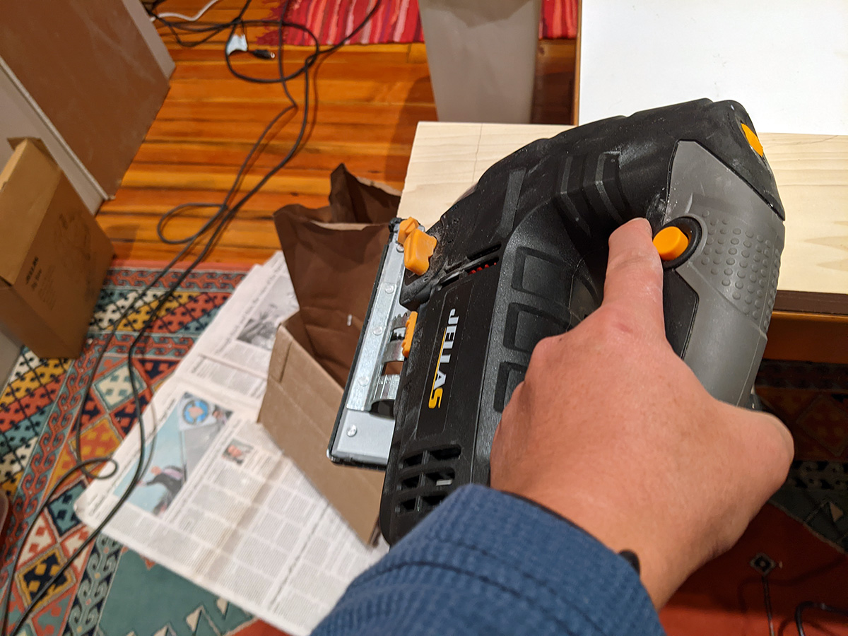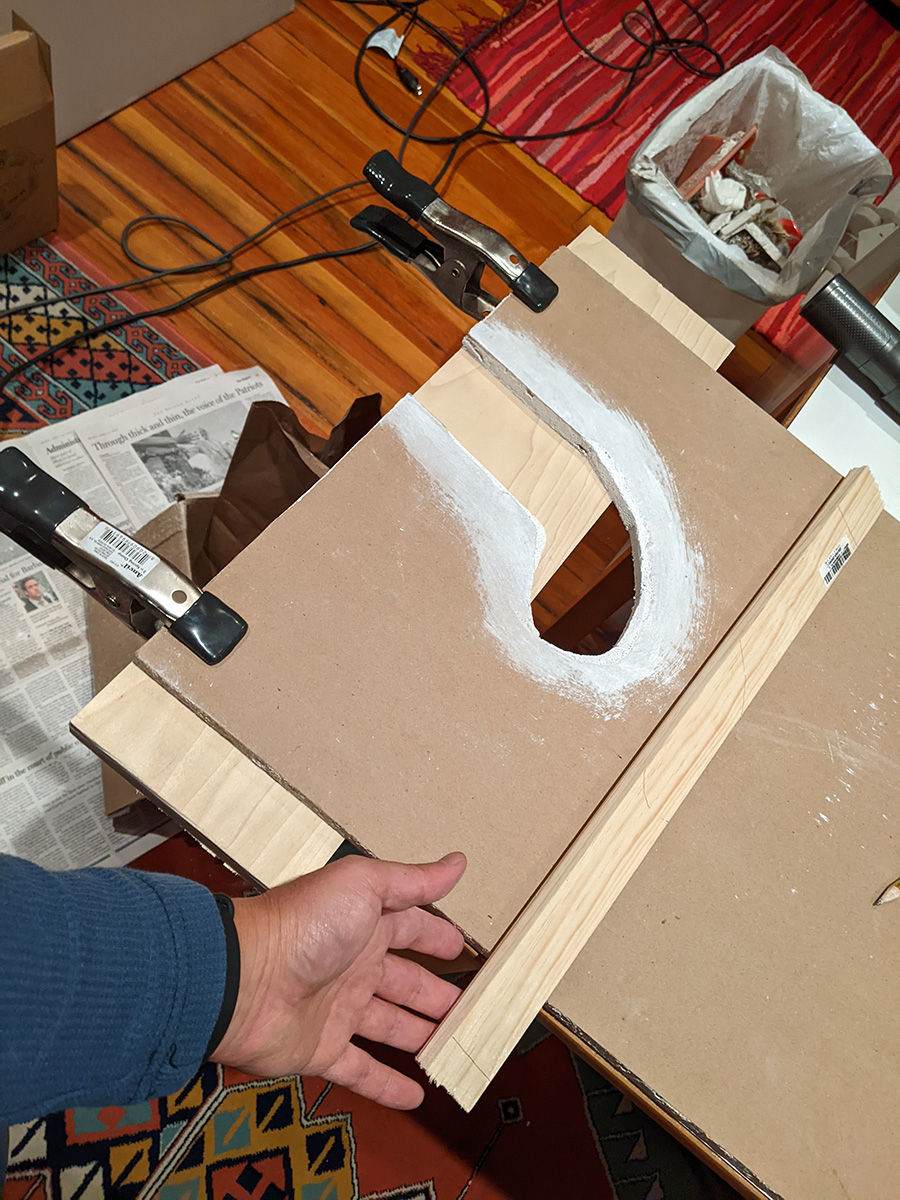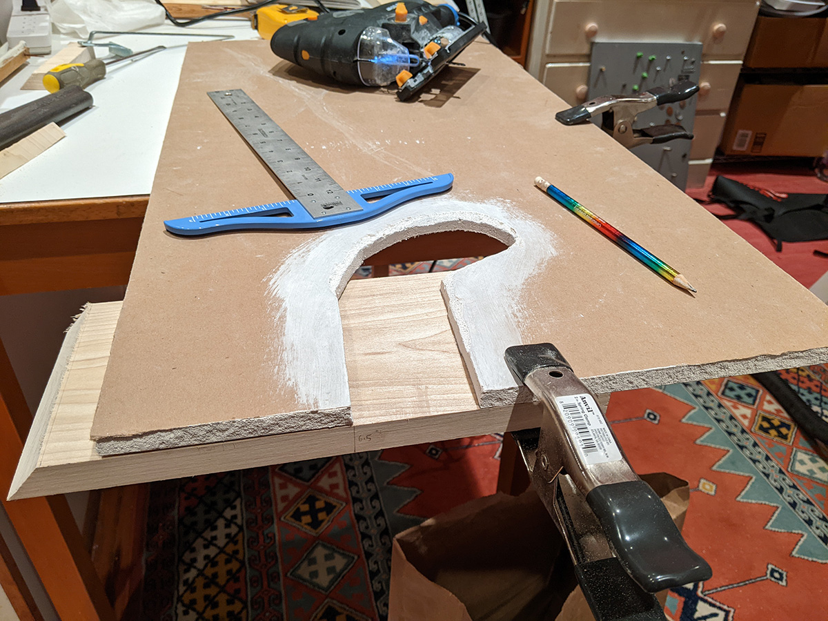 making the baseboard cutout was more challenging. there was the material consideration: the poplar baseboard is not only a harder material but thicker too. the only saving grace is the cutout portions themselves are relatively straight-lined with some slight curves. the second challenge was cutting a 45° bevel for where the corners meet.