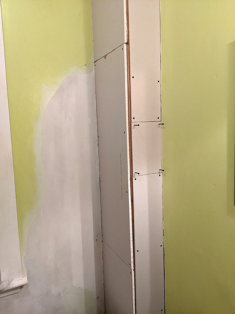 next phase of the project is patching and sealing the corners and seams. there will be much "mudding" followed by sandy.
