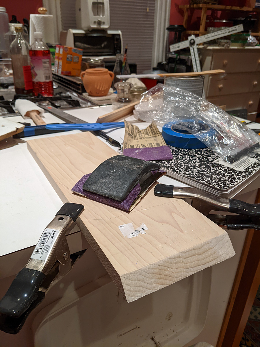 next was the molding, which also required bevel cuts. i had the first bevel cut done on my first attempt (it helps that the molding is a much small piece of wood). i discovered that i could simply reuse the other half of the bevel cut, so i didn't have to make a second bevel cut, just a lucky coincidence saving me some work. by the time the molding were finished, it was already 9:45pm.
