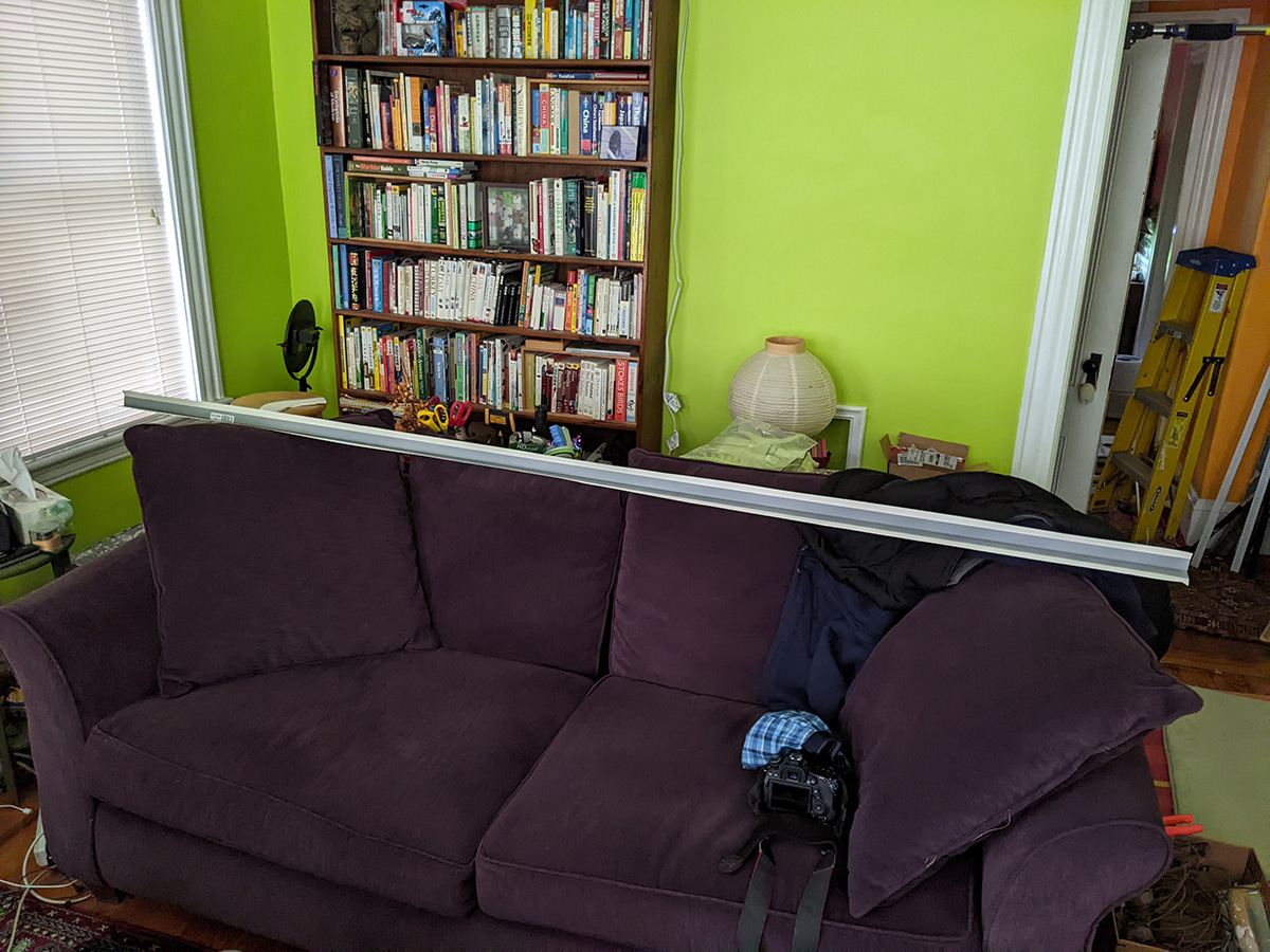 so i had to make a supply run after all. i left a bit before 2pm, taking the motorcycle first to my parents' place so i could borrow the car and go to home depot. after some searching, i found the 10ft paper-faced corner bead, paid for it, drove to my place to drop it off, grab the 8ft corner bead, return the car to belmont, then ride the motorcycle back to my house. that whole outing took a little over an hour. i stopped by the cafe briefly to gave my parents a status update, ended up helping move some furnitures from the upstairs apartment, before finally getting home by 4pm.