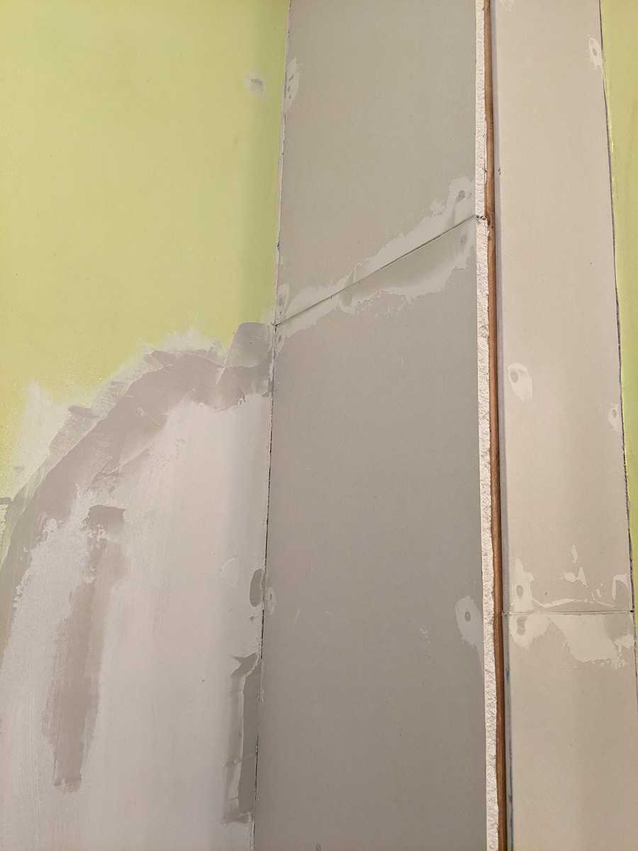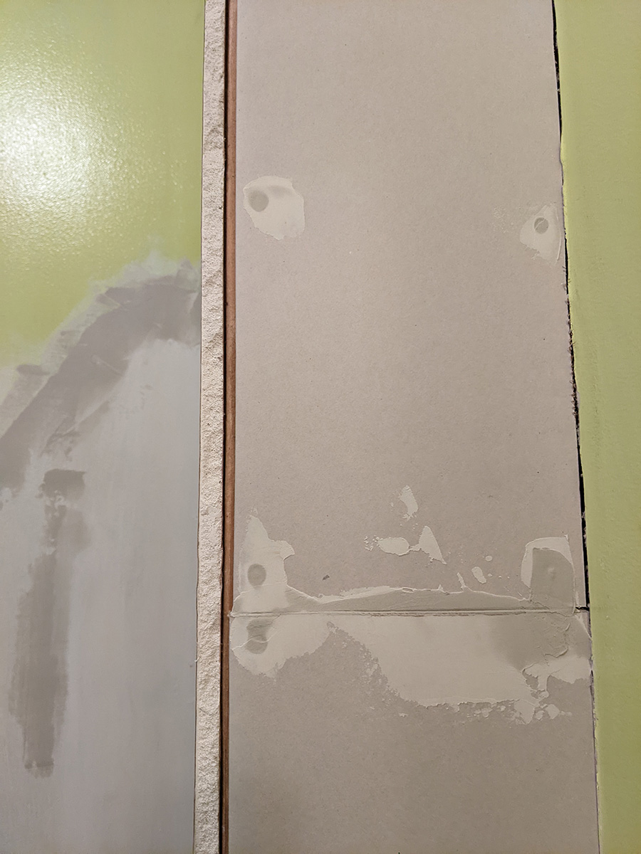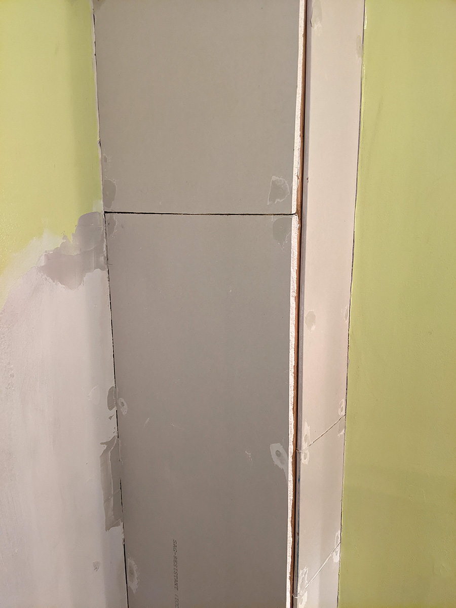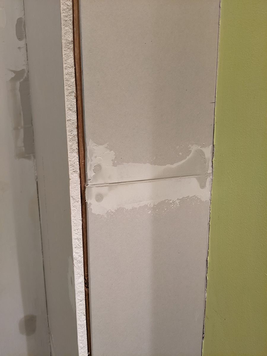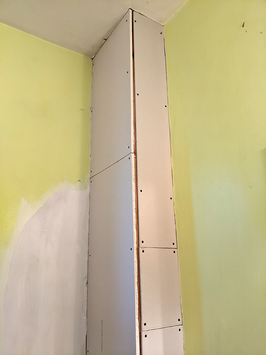 today was a temporary reprieve from bathroom work as i had to work at the cafe. inspecting the work i did yesterday, i noticed one section of drywall was a bit short and created too much of a gap on the outer corner. since i still had enough spare drywall, i decided i'd replace this piece when i got back home.