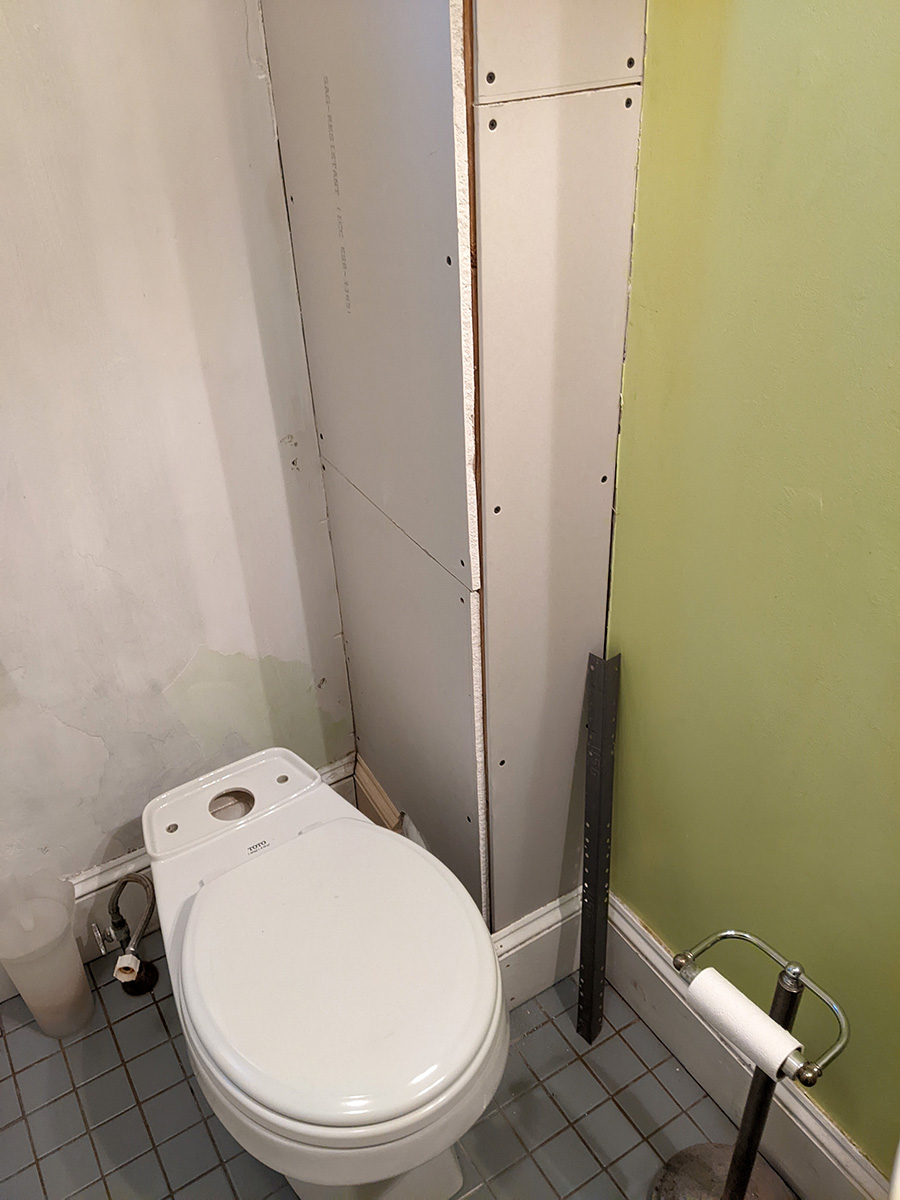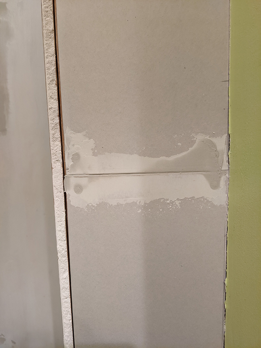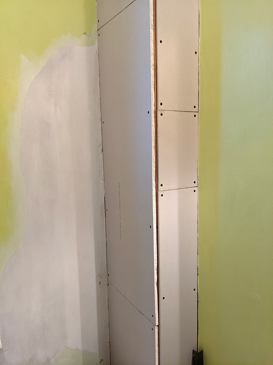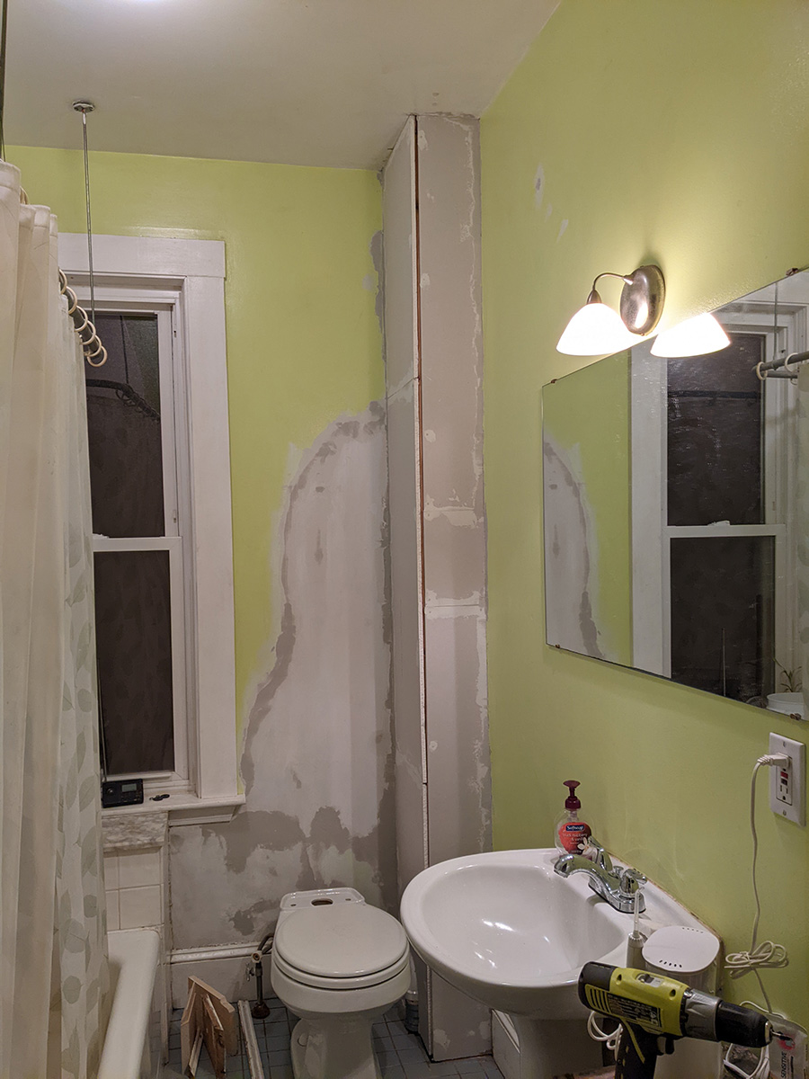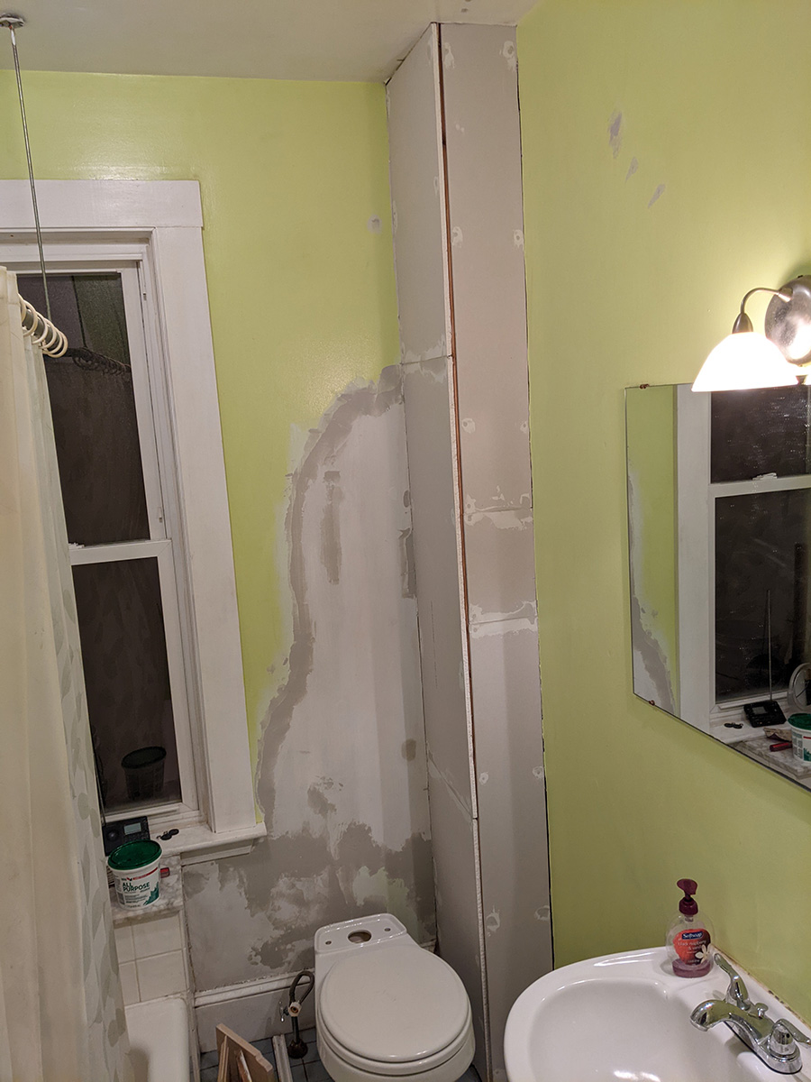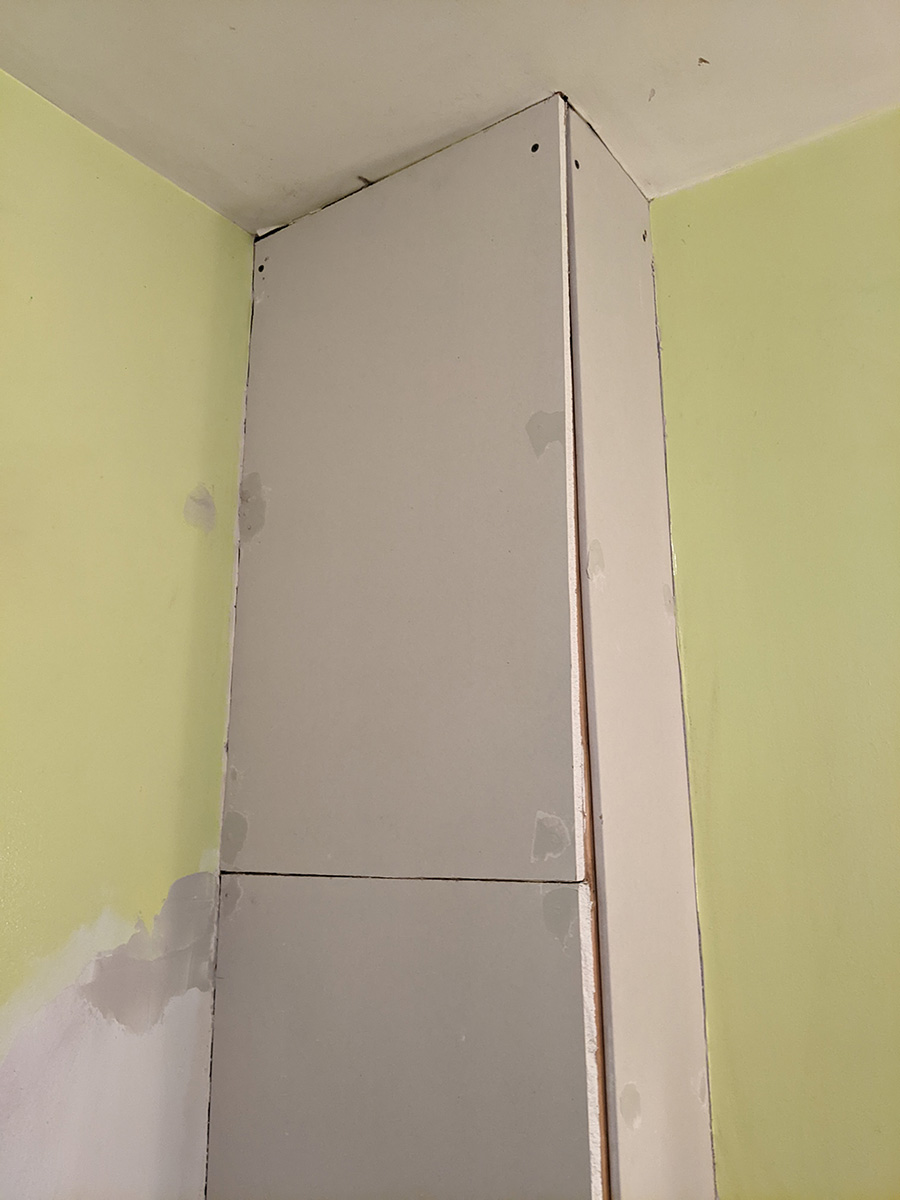 today was a temporary reprieve from bathroom work as i had to work at the cafe. inspecting the work i did yesterday, i noticed one section of drywall was a bit short and created too much of a gap on the outer corner. since i still had enough spare drywall, i decided i'd replace this piece when i got back home.