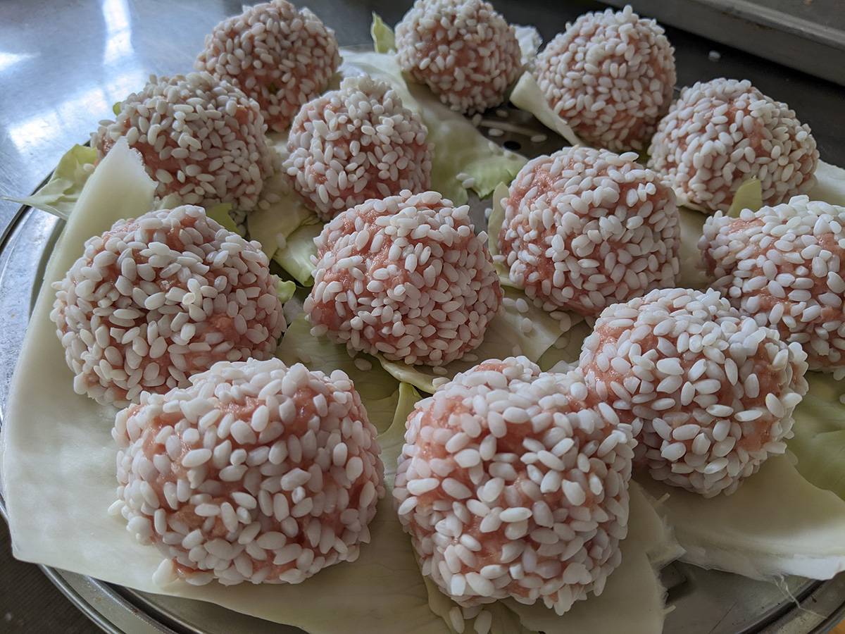 my sister was making pearl meatballs (珍珠丸子) and baked vegetable buns for her catered meal plan. or more like my parents were making them because they seemed just as busy as my sister, if not more so. we had the electric baking pan and the steaming cauldron cooking from the induction cooker. we should write a book titled, "how to run a food business with small electric appliances." in the afternoon catering customers started arriving to pick up their orders. after one customer left, we had a huge shouting argument because my sister had miscounted and charged the customer less even though my mother caught the error and told my sister about it. at first my sister didn't believe it, but when my mother showed her proof, she got really angry.