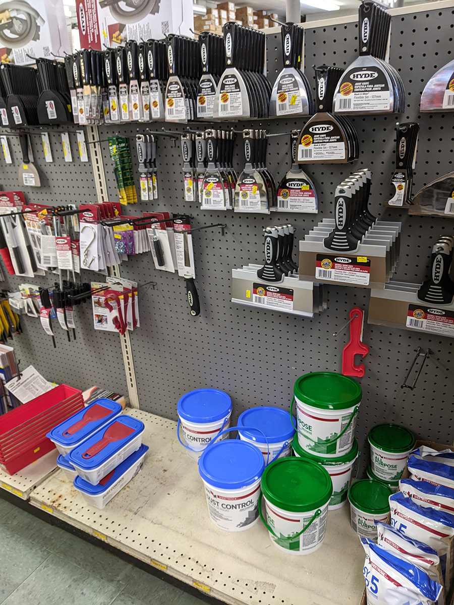 this meant another trip to home depot. i wasn't looking forward to it since it was already 4:45pm, i would most definitely hit rush hour traffic, friday evening no less. but off i went, it took me 25 minutes to get to home depot, my second visit of the day (how many times have i visited this week? i think around 7 at least). there was of course hardly anyone there. i grabbed a smaller 7" paint tray, some wood filler, and a 2" brush just in case i needed it.