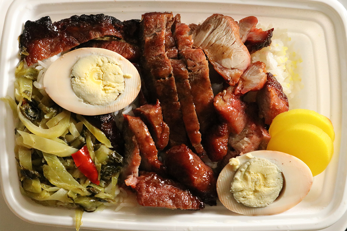 my father finally came back by 10:30am. it suddenly got really busy, and i wasn't able to leave until nearly noontime. my mother packed me a barbecued pork bento box for lunch.