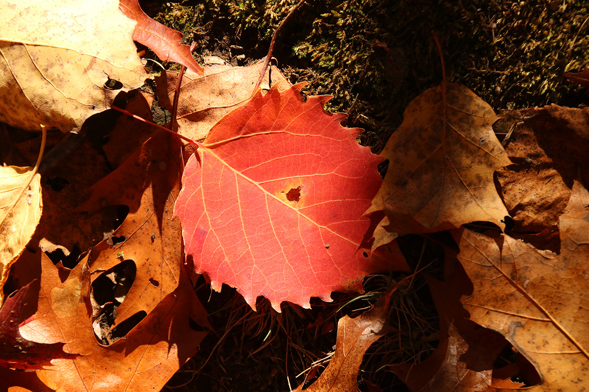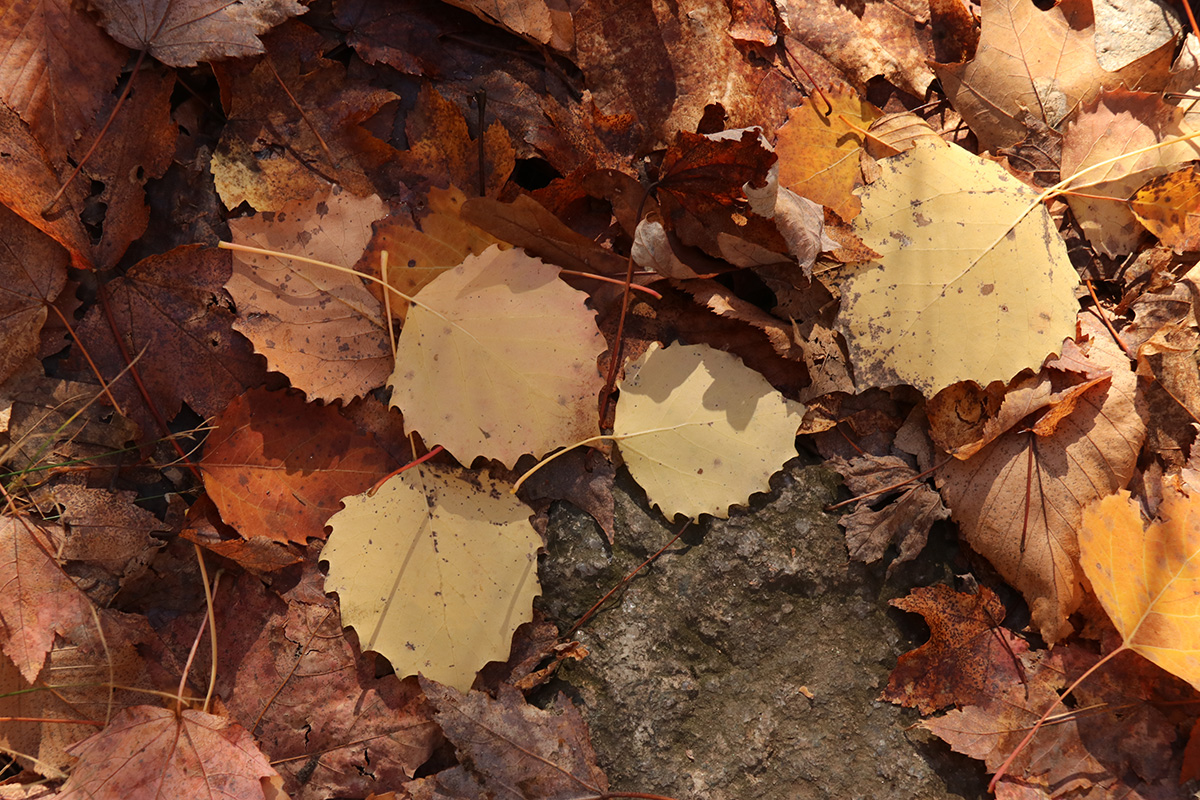 another cool thing i saw (which i only identified later when i got back home) were leaves from a bigtooth aspen. the leaves were semi-circular and toothed, and came in pale yellow, yellow, and red colors. because of their flat leaf stems, the leaves shake in the wind and create a noise.