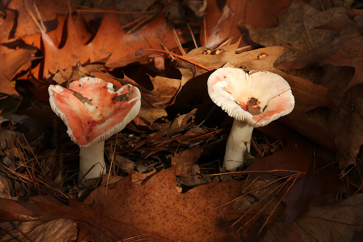 since it rained so much last night, i was hopefully to see a lot of mushrooms. it was very disappointing though, we only saw one group of mushrooms poking out from the leaf litter. maybe it's just too cold for mushrooms, despite the abundance of rain we've had for the past few days.