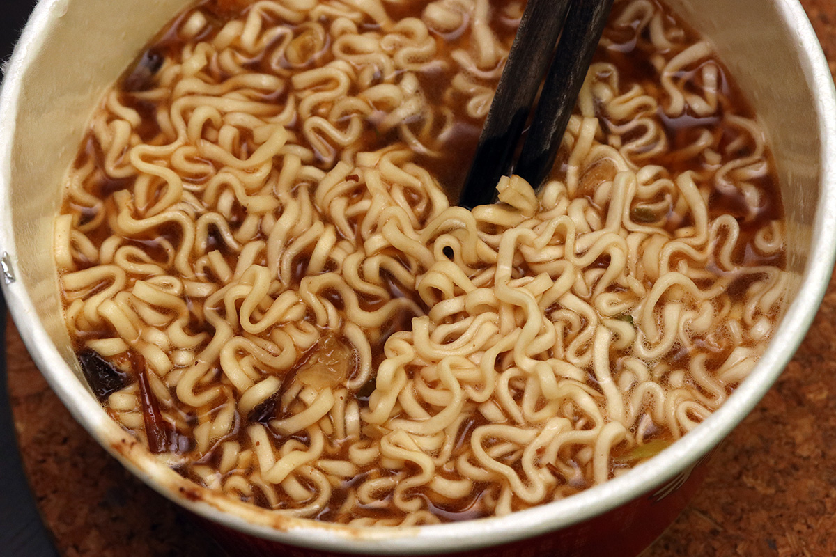 for dinner i ate the instant bowl of chicken ribs ramen that my cousin brought from taiwan that she was going to eat at some point but decided to give it to me instead. it was okay, the only treat being that this was authentic taiwanese instant noodles. it wasn't quite enough, and i ate some more crispbeard with jarlsberg cheese, along with an asian pear.