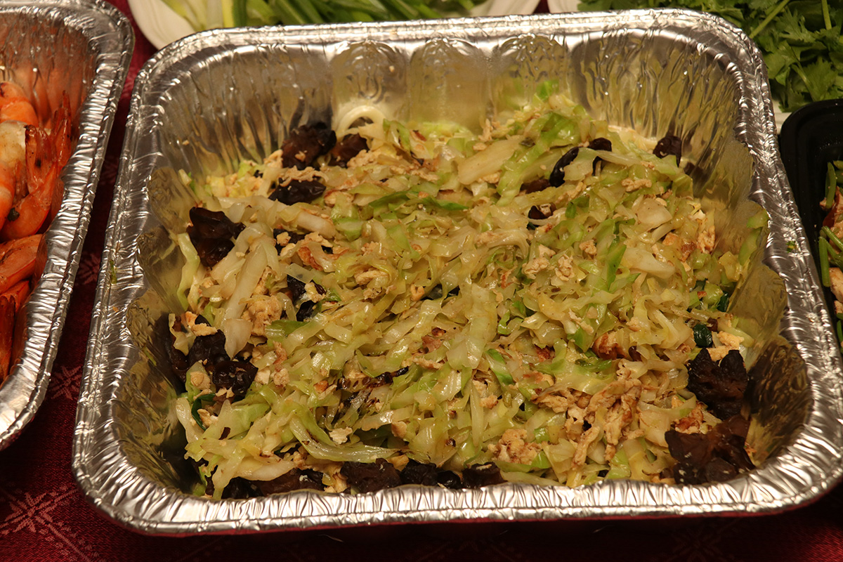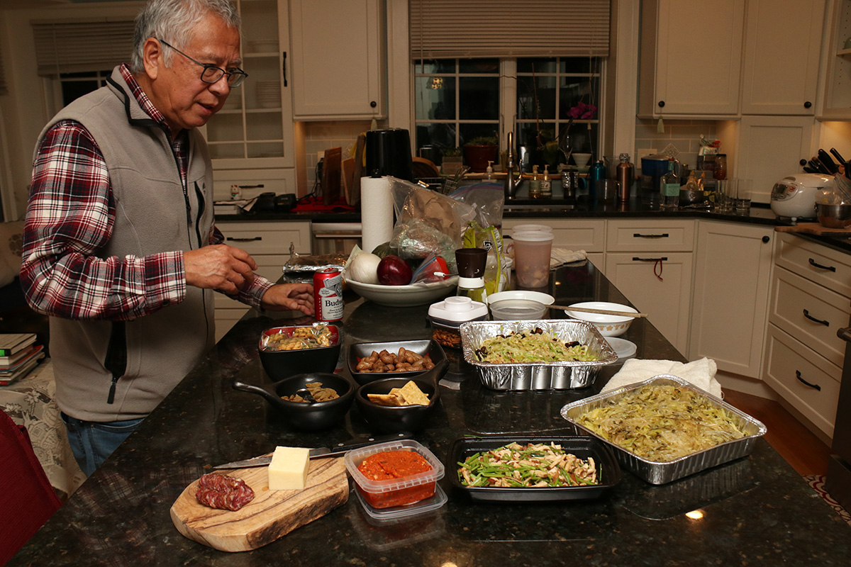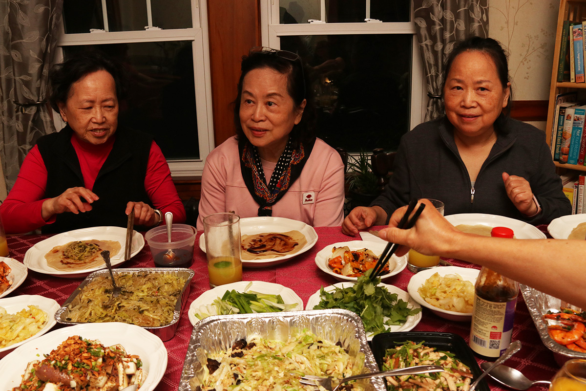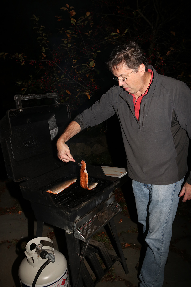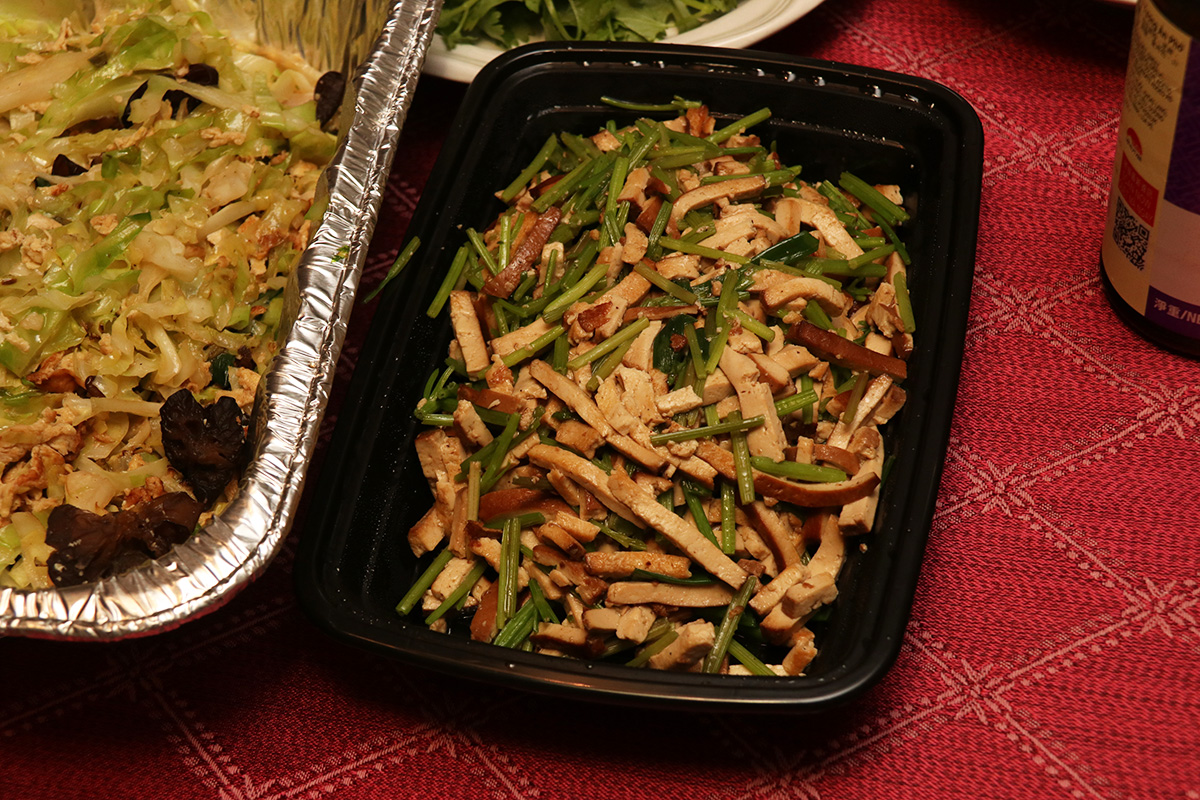 matthew was outside grilling some fish (arctic char from the salmon family). it was cold enough that i could see my breath. the main course was some mushu pork my father had made along with a stack of chunbing (spring pancakes). so used am i to eating chunbing for thanksgiving that it felt weird not to be eating it with the usual turkey.