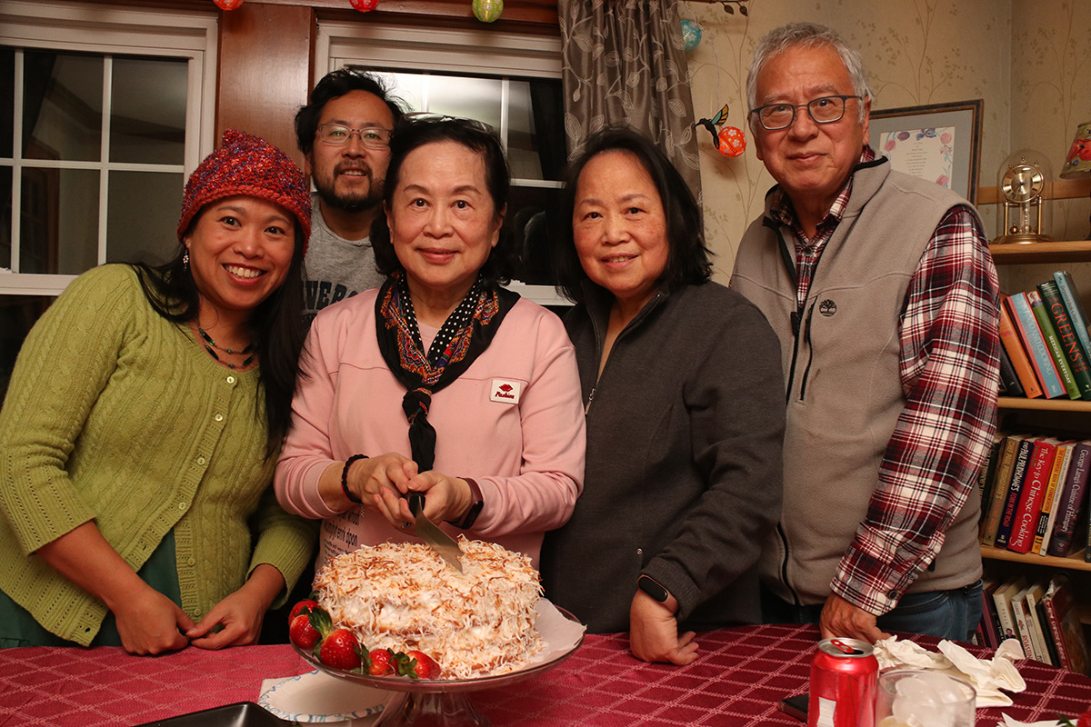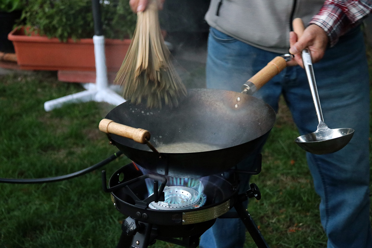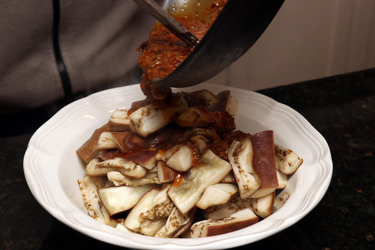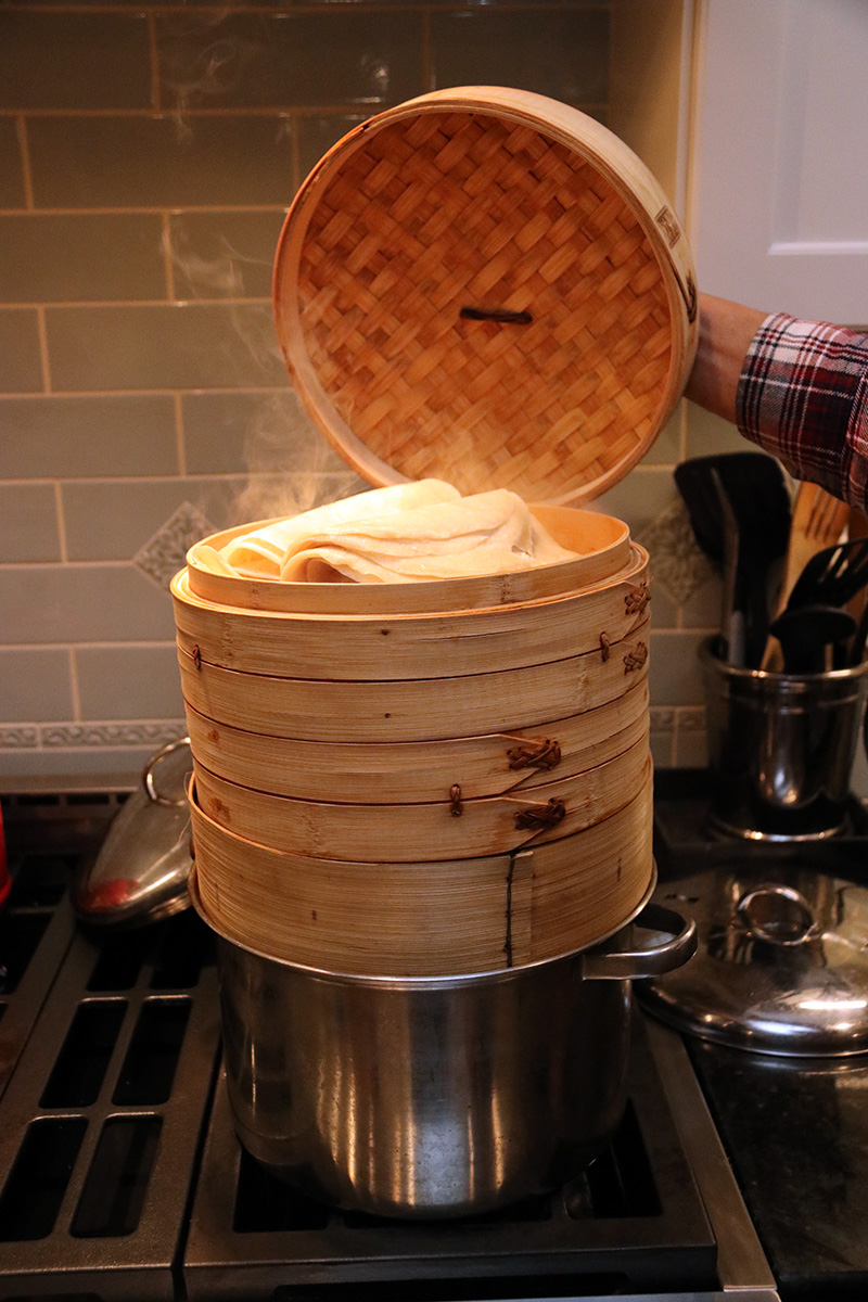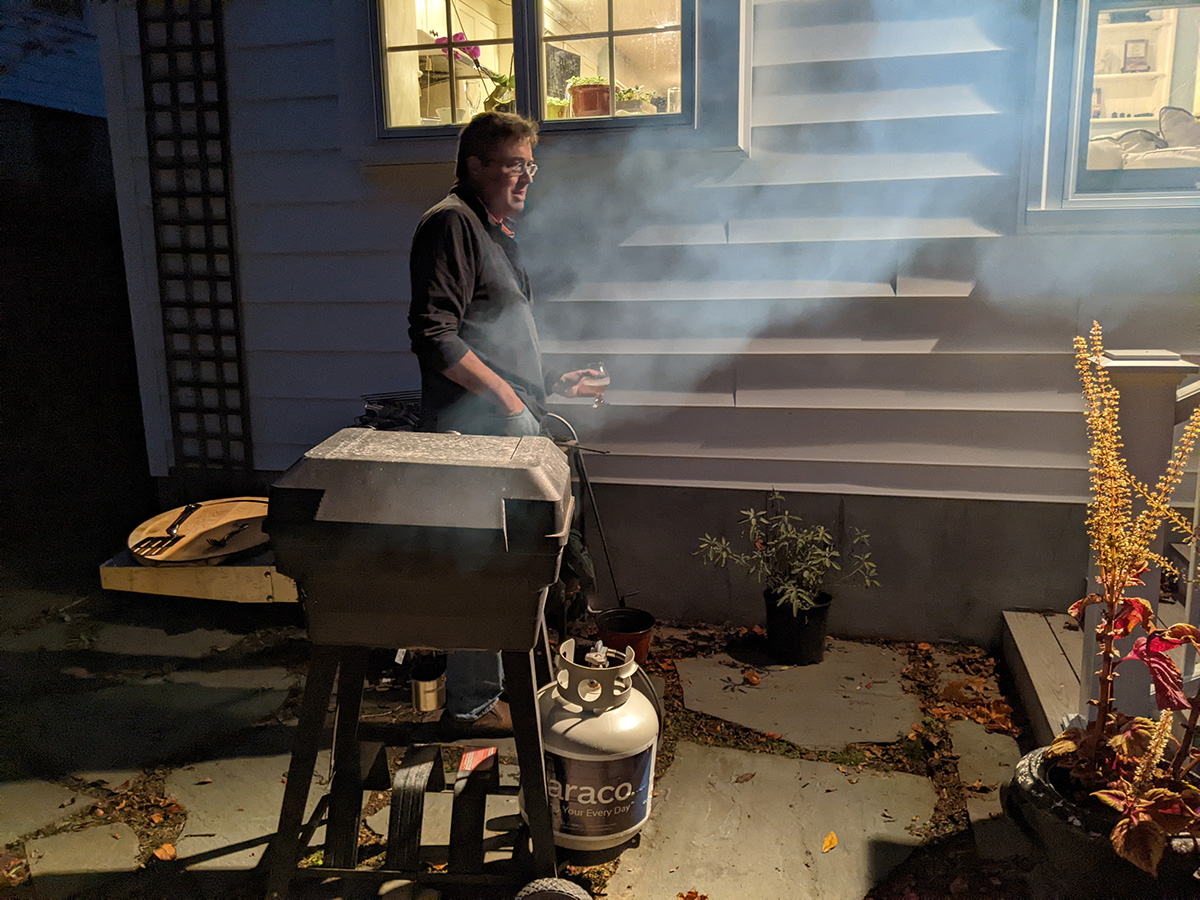 matthew was outside grilling some fish (arctic char from the salmon family). it was cold enough that i could see my breath. the main course was some mushu pork my father had made along with a stack of chunbing (spring pancakes). so used am i to eating chunbing for thanksgiving that it felt weird not to be eating it with the usual turkey.