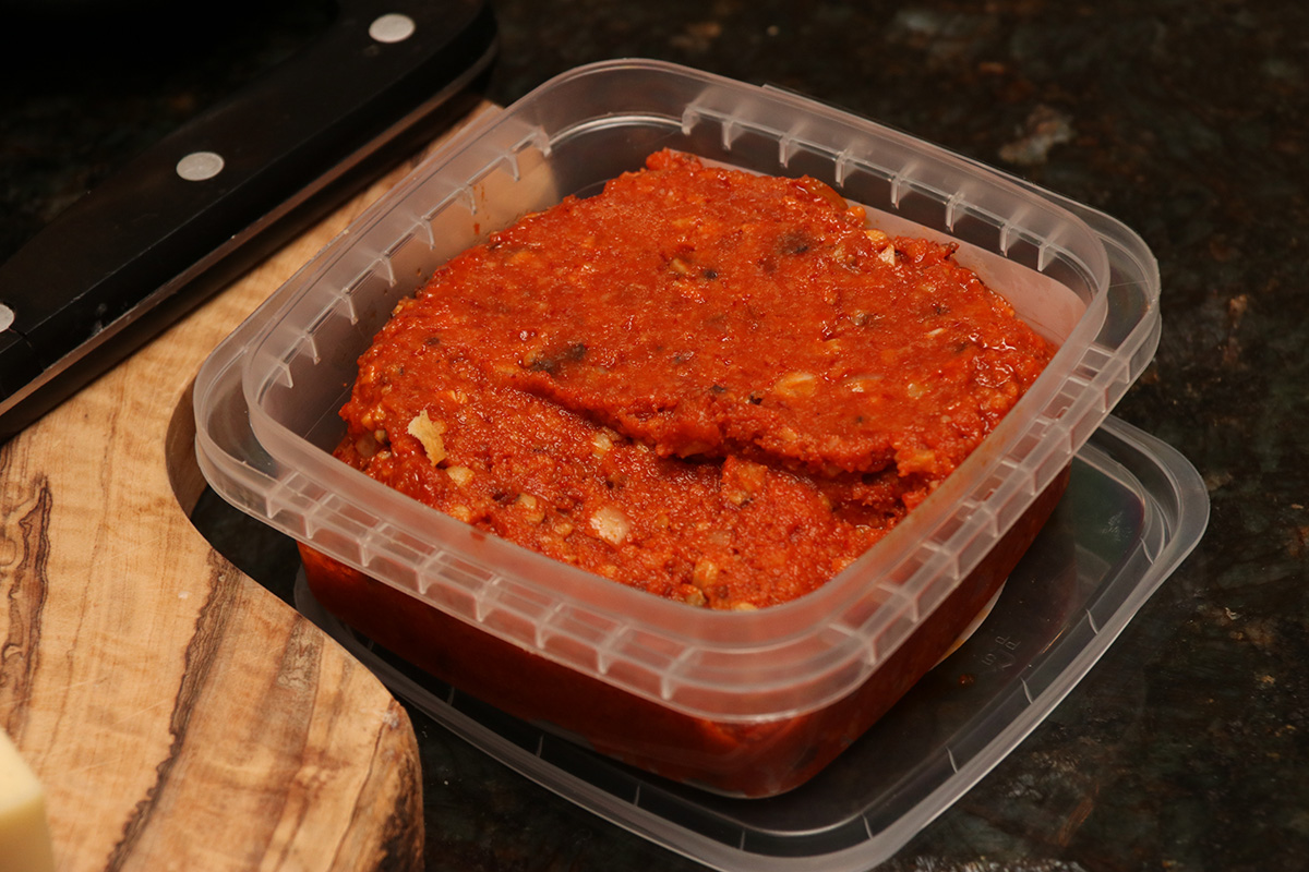 we left for my aunt lili's place by 5:40pm. she'd invited us over for dinner in honor of my taiwanese aunt's boston visit. for appetizers there was some muhammara dip which went very well with some pita bread chips.