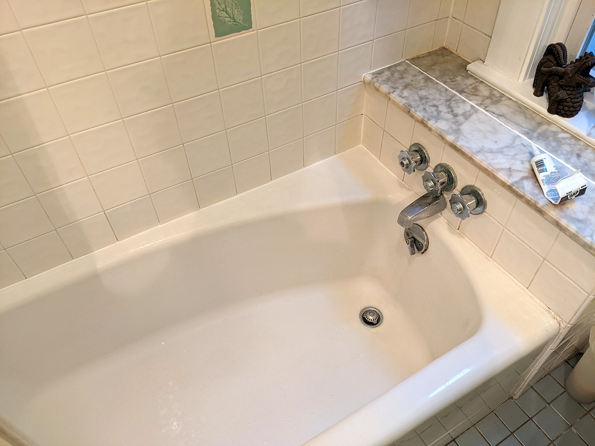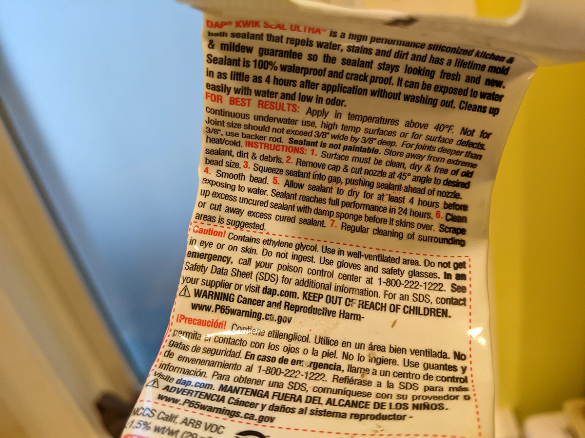 because i wanted to give my fresh caulk more time to cure, i didn't dare take a shower tonight. instead i rolled up a towel and placed it against the new caulk, and washed myself directly from the tub faucet, being extra careful not to splash too much. as for the caulk, it seemed dry enough to touch, which i guess is a good sign. can't remember how long the last time i waited before getting the caulk wet, but i think it was just 4 hours, which wasn't enough time for old caulk to harden to the point that it resisted water, hence sections of it managed to wash away.