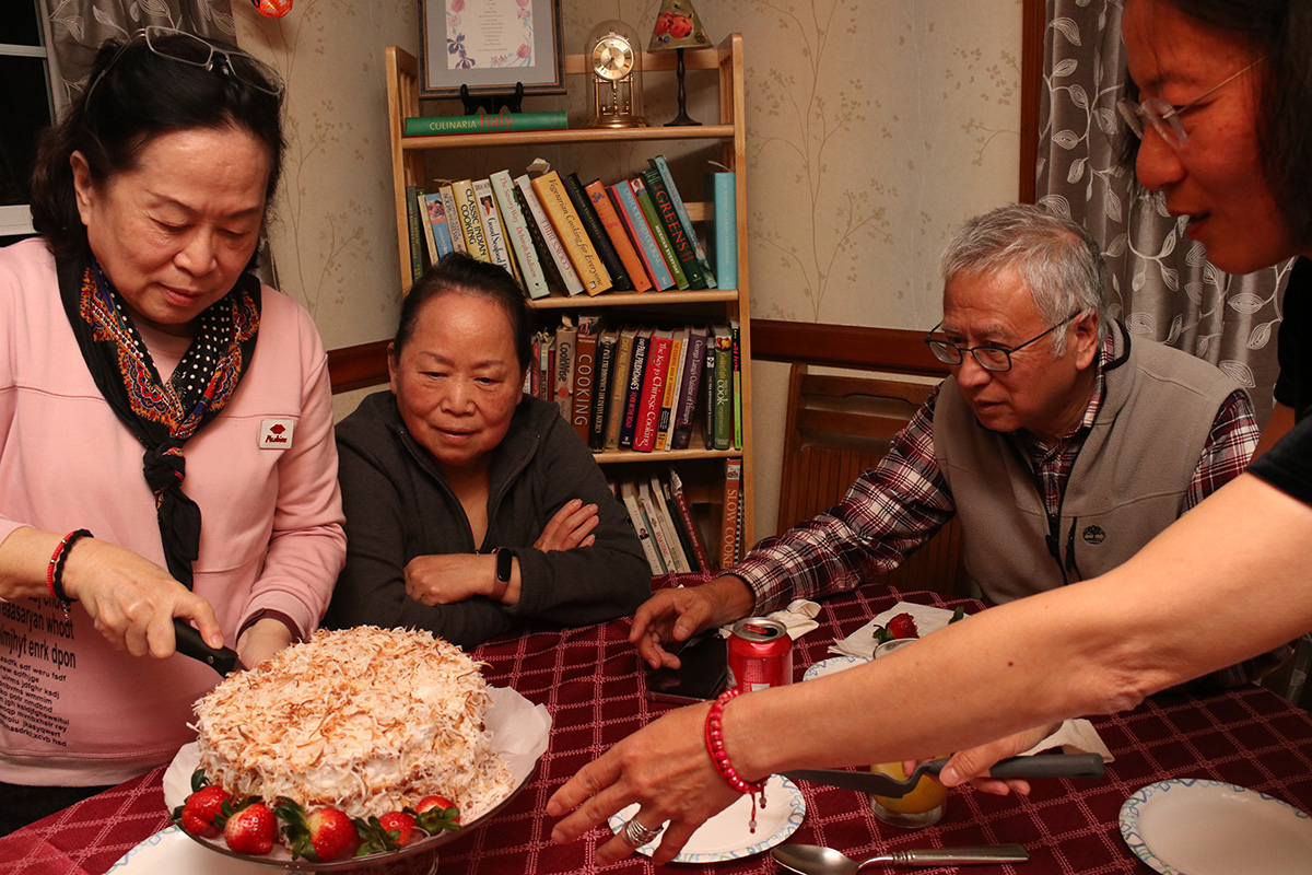 by the time i got the cafe by 10:40am, my sister was already there. while putting the seats out onto the patio, i saw my parents driving by, waiting for the light to change. my mother rolled down the window and said they were going to pick up my aunts. they showed up at the cafe a short time later. it got really busy between 12-2pm. my parents left afterwards with my taiwanese aunt to do some shopping. the cafe seemed pretty quiet for a bit, until it got busy again around 3pm. we ended up making more this saturday compared to last week.