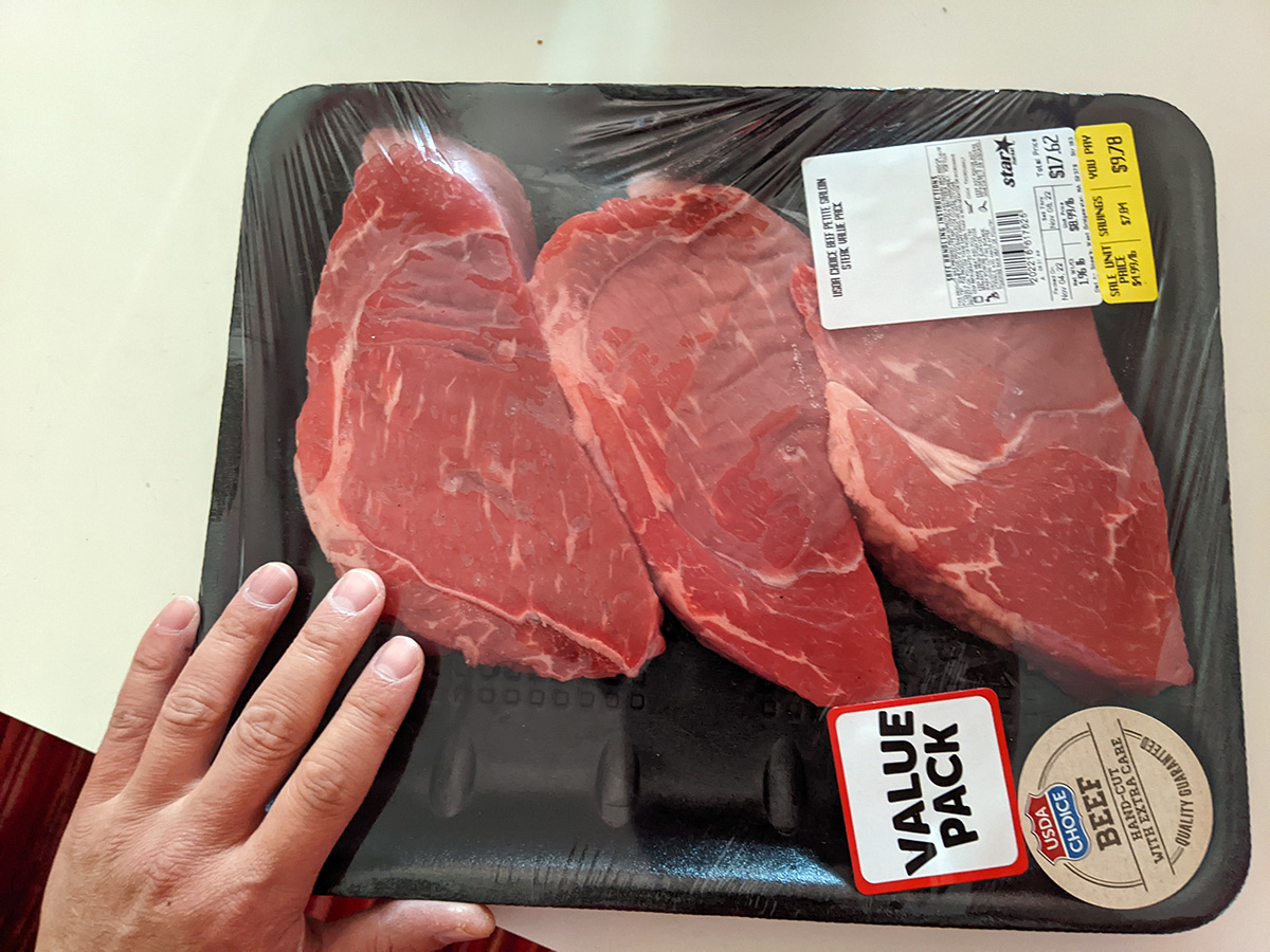 i stopped at my house briefly to grab the steaks and the aldi spinach, before continuing to the cafe to drop off the supplies. my mother made some "oil rice" and gave me a box for dinner, sparing me from having to eat korean ramen.