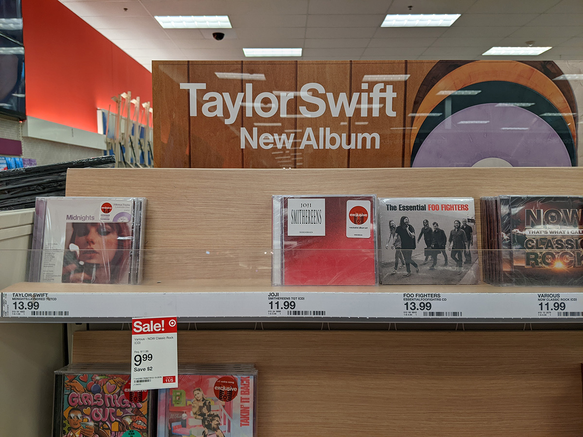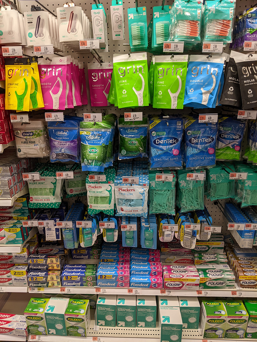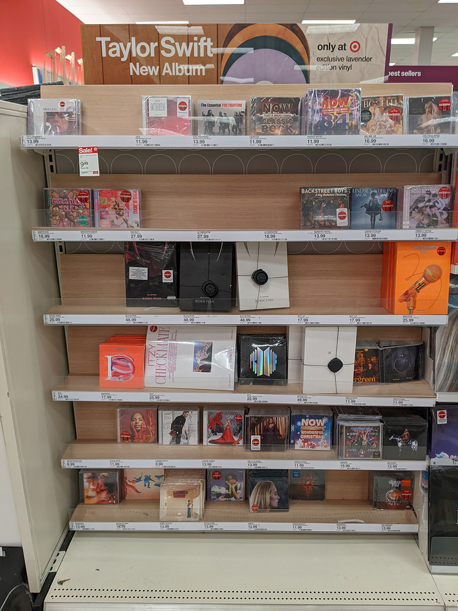 after that i went to the watertown target, where i picked up the joji smithereens CD i bought for hans last night. later i went through the store to see how many more CD's they had left (a few, along with taylor swift's new album). i also checked to see if they had any dental floss. i searched online, there's no mention of a dental floss supply shortage, but i haven't seen dental floss at market basket for nearly 2 months now, and what they do have are just dental picks. target did have dental floss, but the price was exorbitant.