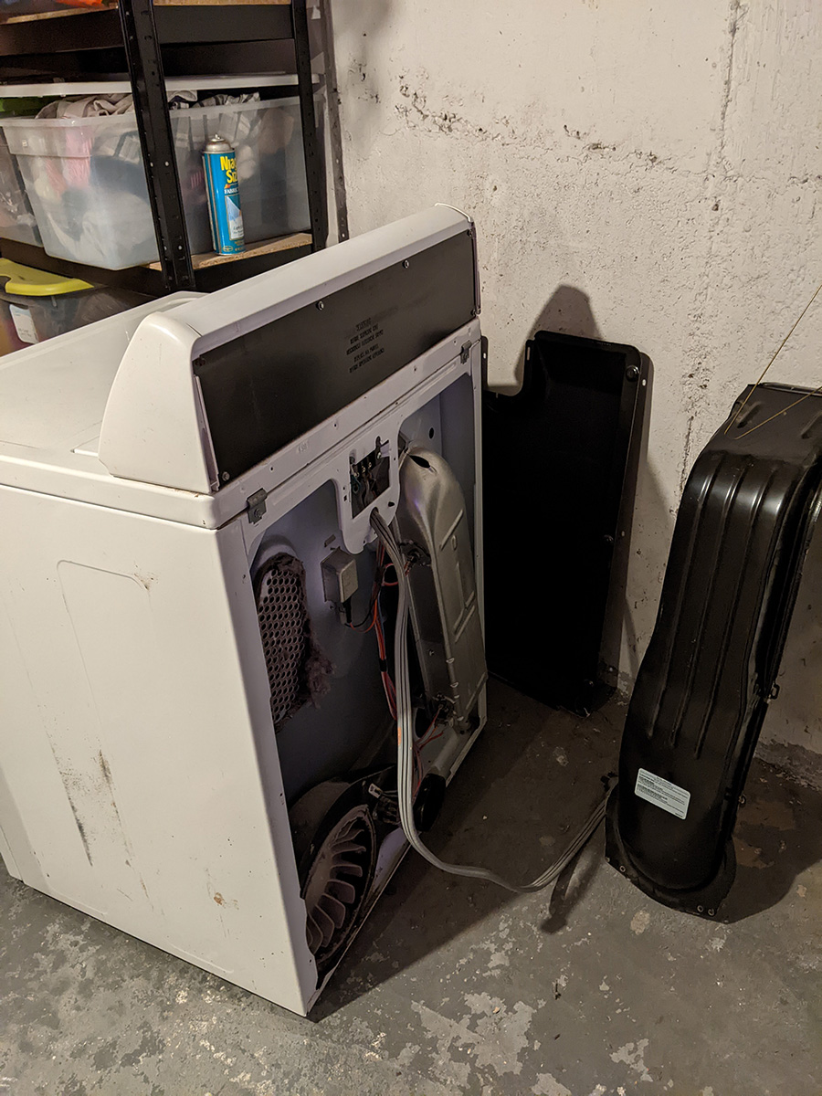 i spent the rest of my time in the basement, cleaning up the area for the home depot appliance delivery guys coming on saturday to drop off the new LG washer and dryer and to remove the old dryer. my parents will keep the old washer and move it to the cafe basement for future use. once the area was cleaned, i rotated the dryer so i could open up the back and inspect the blower fan. there was a bit of dust, but nothing that would prevent the dryer from working. all signs point to a busted motor, which can be replaced, but the dryer is already 20+ years old, and hard to say what else might be wrong with it. a part of me isn't too happy that we're replacing it just because it's old - as an old person myself, i don't like that mentality.