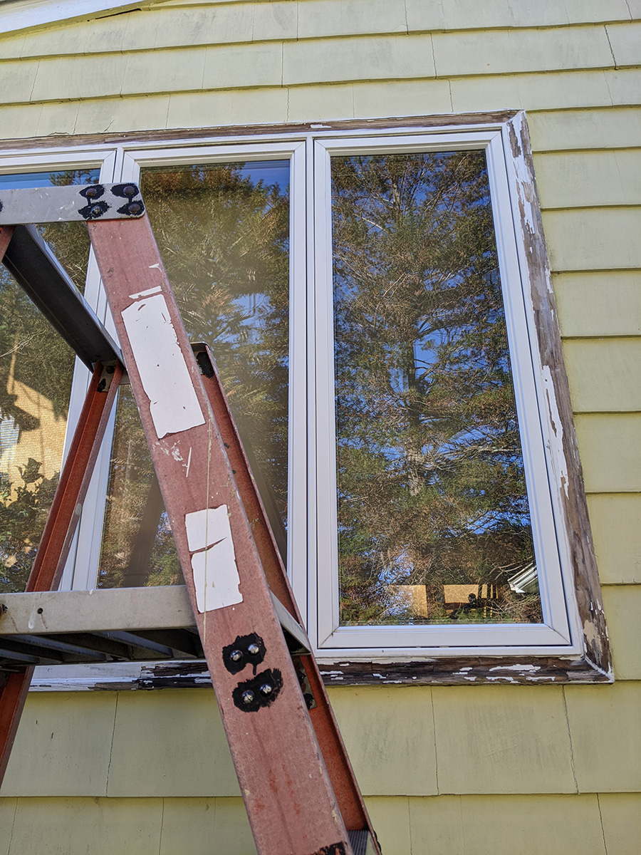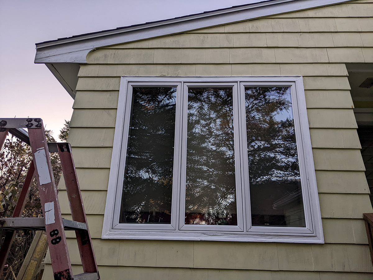 i got to my parents' place by 2pm. it was another warm day, and i stripped down to my t-shirt to work. so this is the plan: instead of replacing the rotten molding, i'm just going to paint over the exterior window frame (a literal white-wash). with temperatures dropping by next week, we've basically ran out of time to do any more exterior work. come spring-summer, we'll remove and replace the damaged molding and repaint. i've already caulked all the necessary parts, so there shouldn't be any further damage.