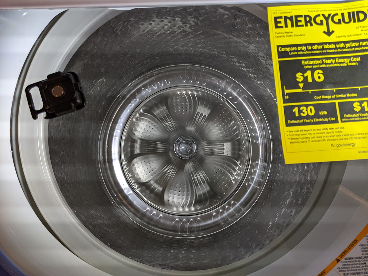 to run the test, we first power on the washer, then press the spin and soil buttons at the same time. i did that and the machine did nothing. i had to look online for answers. turns out, you're supposed to put the machine in normal first, turn off he power, turn it back on, and then press spin and soil, followed by the start button. the washer then went into a test mode, filling the tub briefly with cold then hot water, followed by a drain, then a spin dry. we realized that the drain hose just barely reached the basement sink, and when the washer initiated a drain, the water coming out from the pump was so violent i had to grab the drain hose otherwise it would've sprayed water everywhere. the spin cycle was mesmerizing, the washer actually locks the door during that time, to prevent injuries. with the led light shining into the tub we could see it spinning, but take the light away and inside the tub was just a blur.