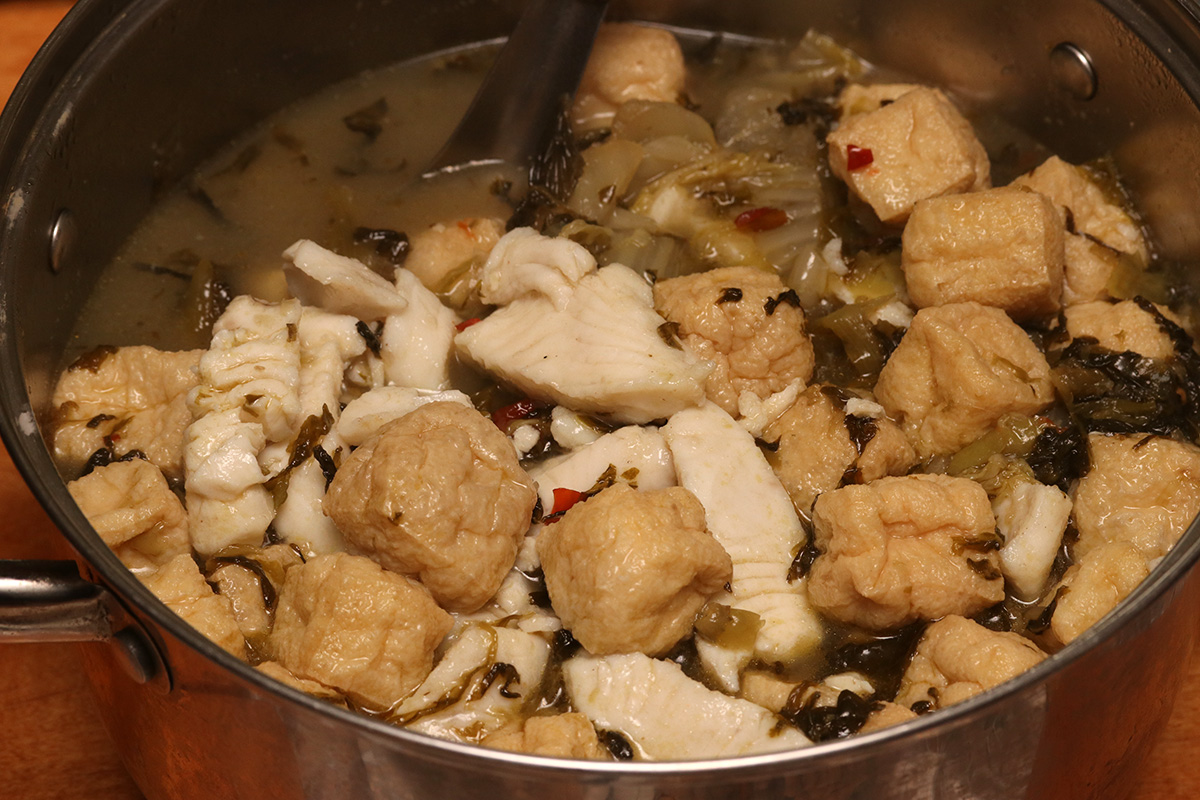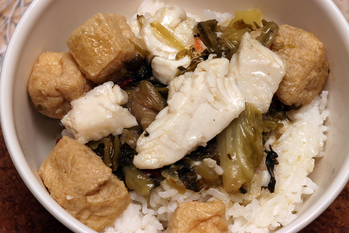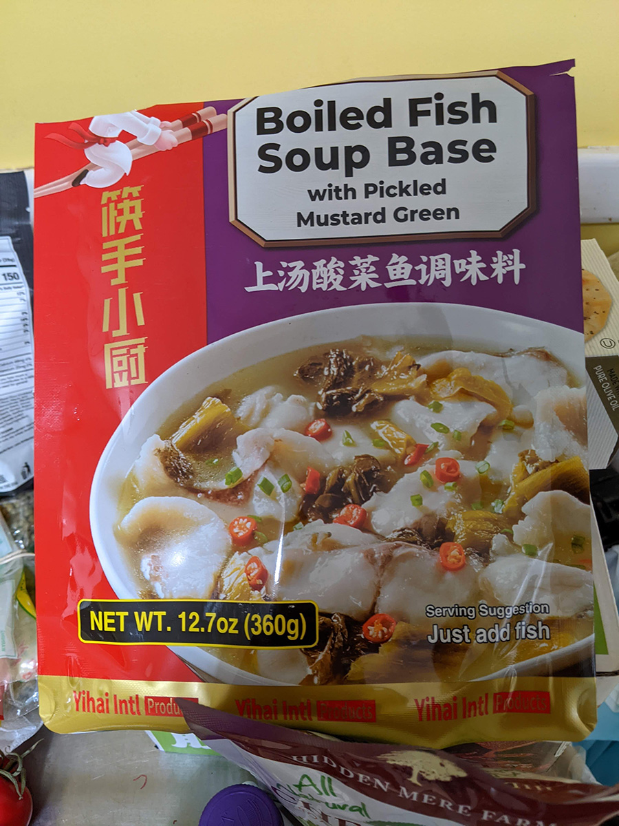 we paired the sour fish stew with rice. it was sour and spicy, but this particular brand didn't have pepper corn, which is a cornerstone of authentic sichuan sour fish stew. nevertheless it was very tasty, and one of the ways i can eat fish and not be adverse to it.
