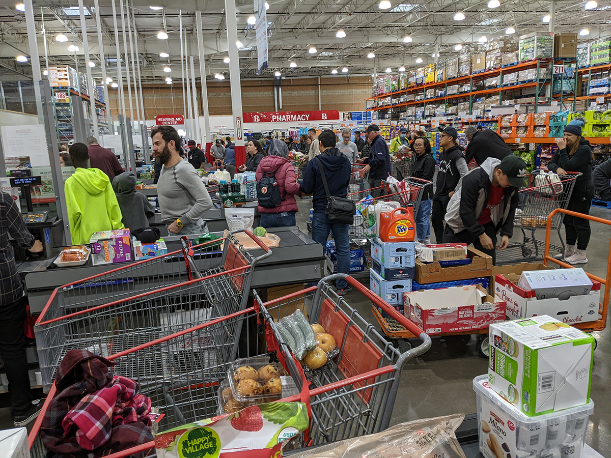 we bought a cart full of supplies. the check out line actually stretched to the back of the store, and was starting to loop around the paper towels and bulk bottled water.