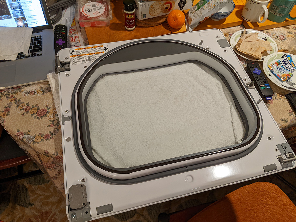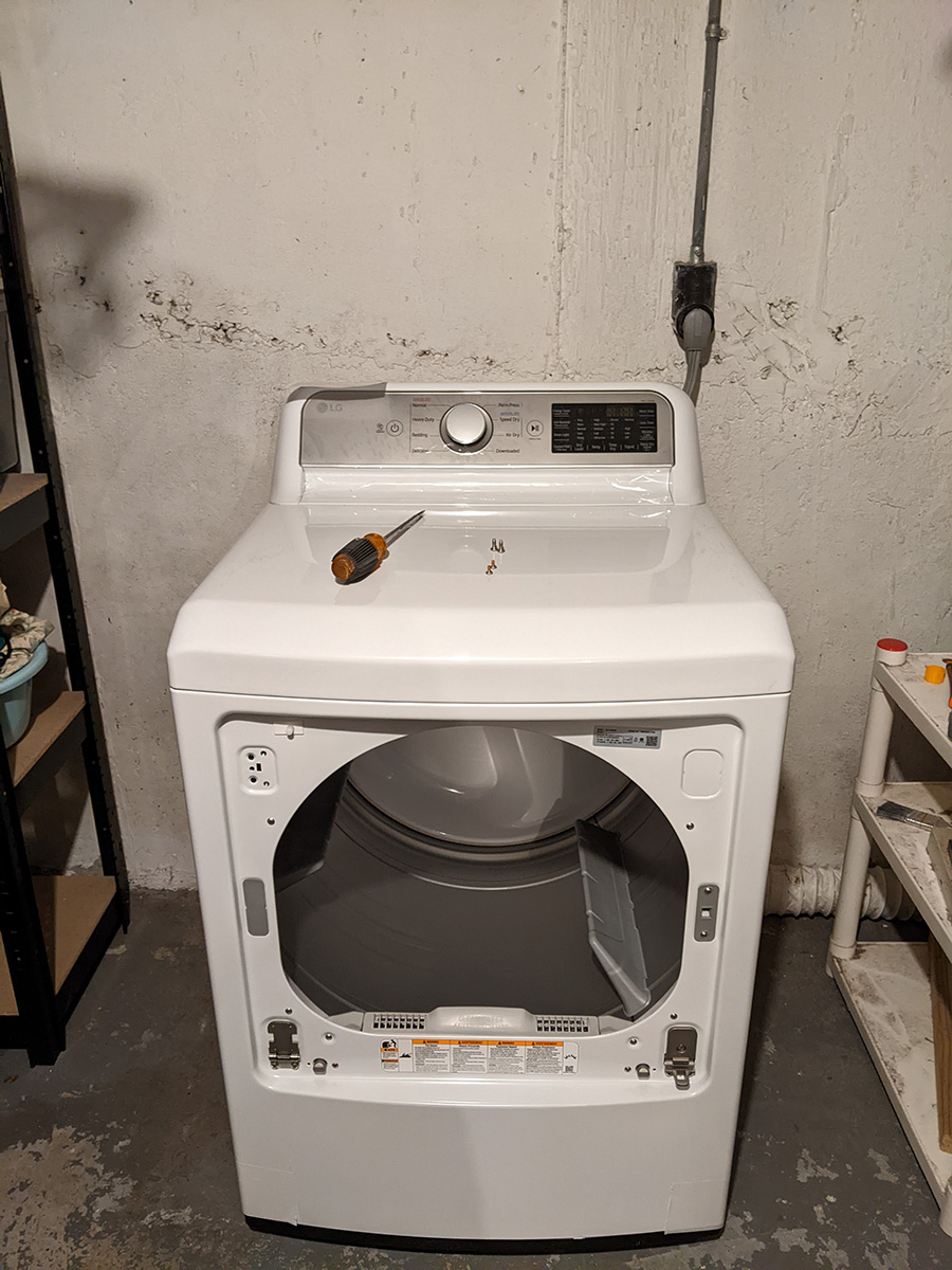 while my mother went to go watch her korean drama on the imac and my father went to go take a nap, i was in the basement removing the dryer door. i switched the latch and hinges on the dryer itself and brought the door upstairs so i could switch it from right-opening to left-opening. there wasn't enough time to work on it before dinner, so i opted to do it afterwards. i found a youtube video that explained all the steps of a door reversal, definitely a lot easier than the manual instructions, which seemed too daunting.