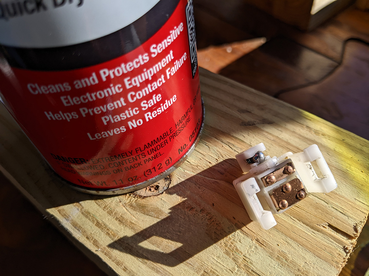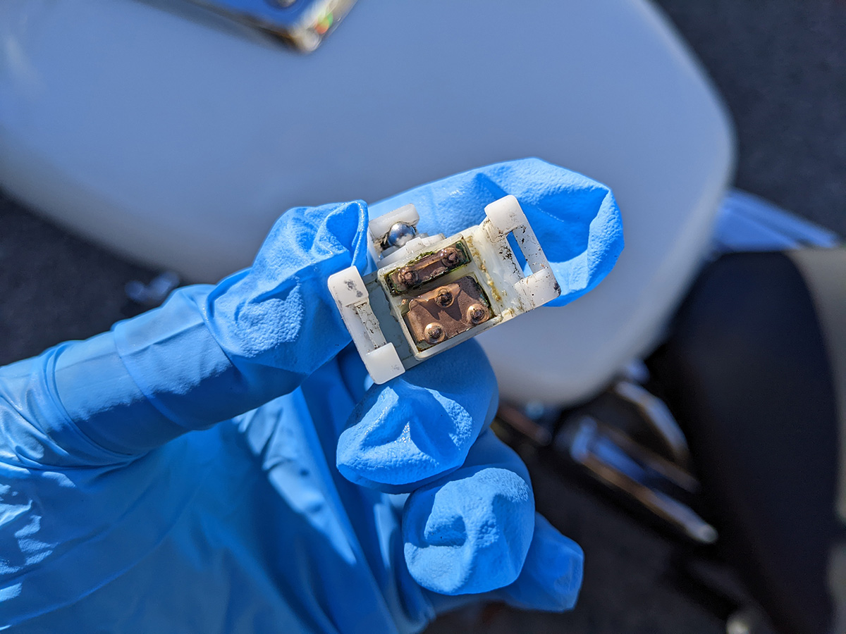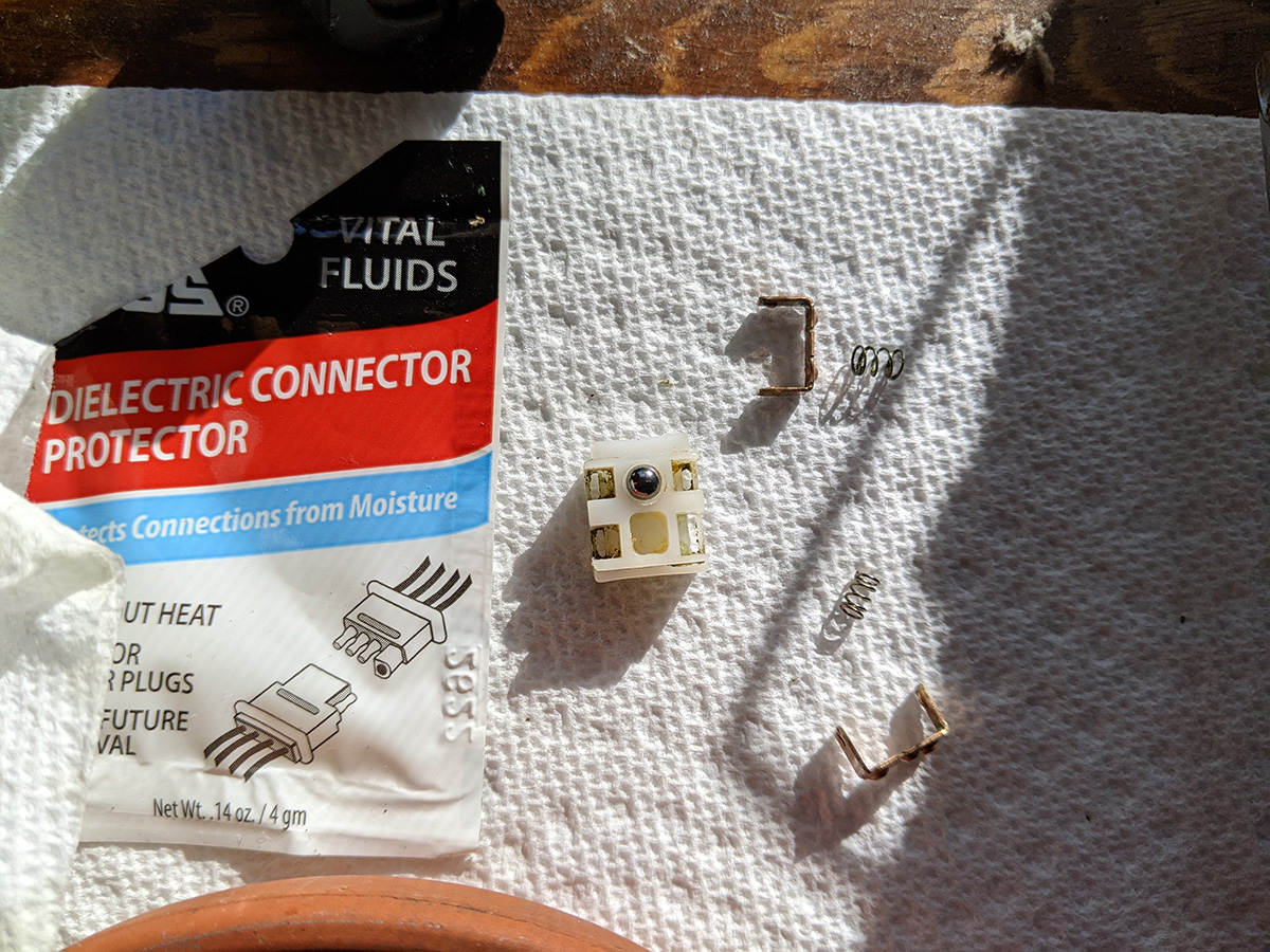 right away i could see the contact points covered up with old grease. i took the switch assembly inside the house and carefully took it apart. i cleaned the contact points, removed all the old grease, and then applied fresh dielectric grease. i then put the switch back together and went outside to install it back into the assembly.