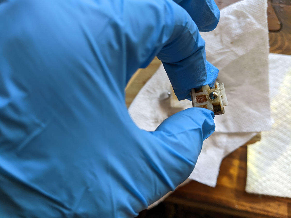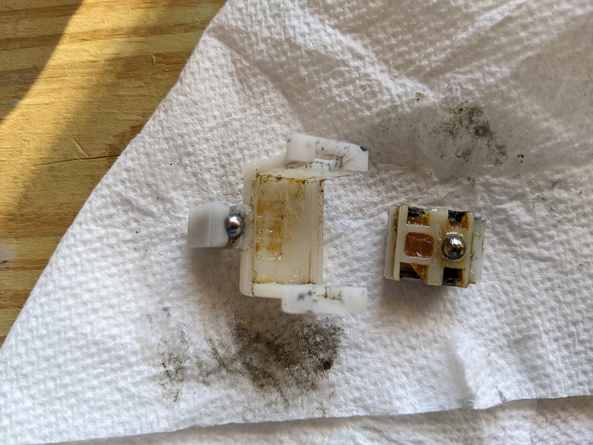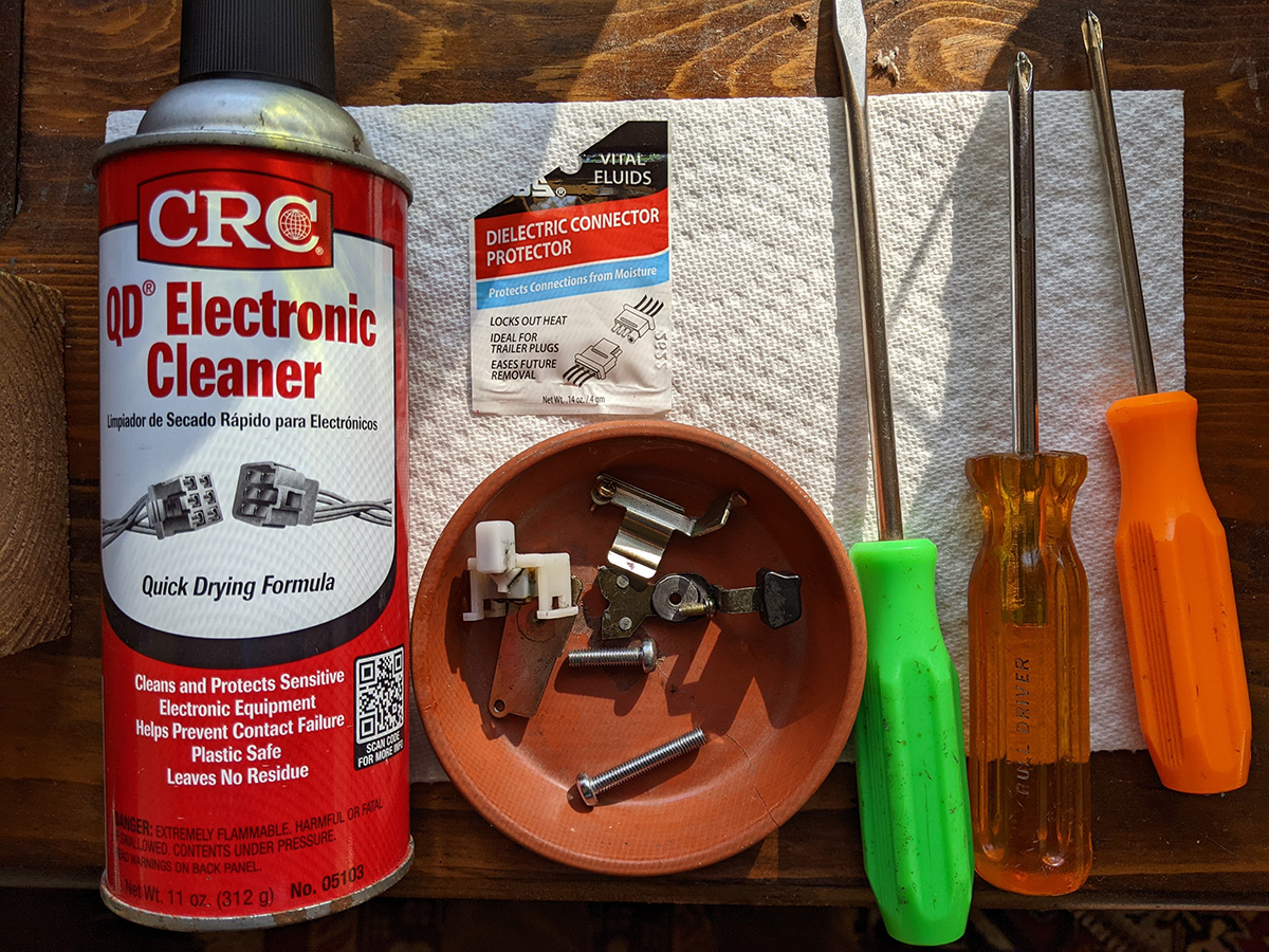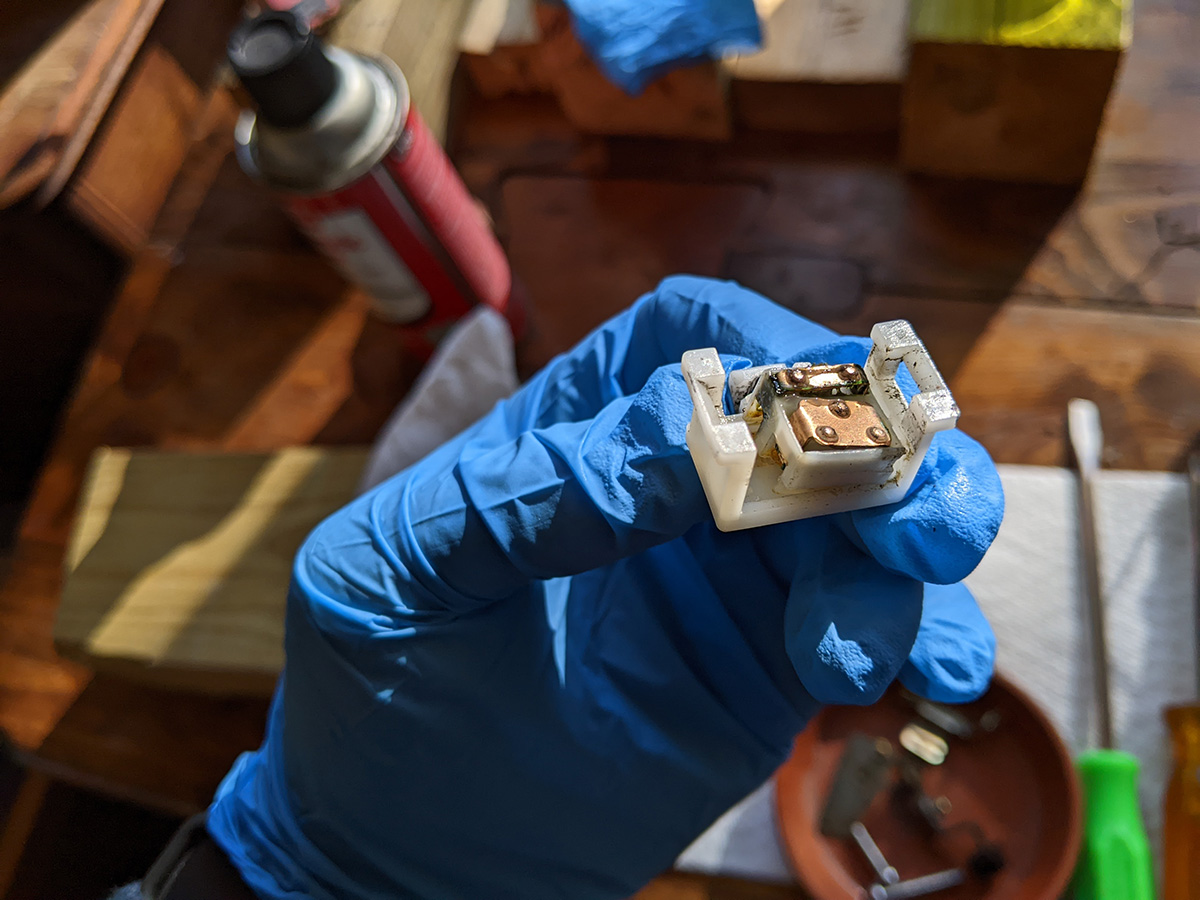 right away i could see the contact points covered up with old grease. i took the switch assembly inside the house and carefully took it apart. i cleaned the contact points, removed all the old grease, and then applied fresh dielectric grease. i then put the switch back together and went outside to install it back into the assembly.