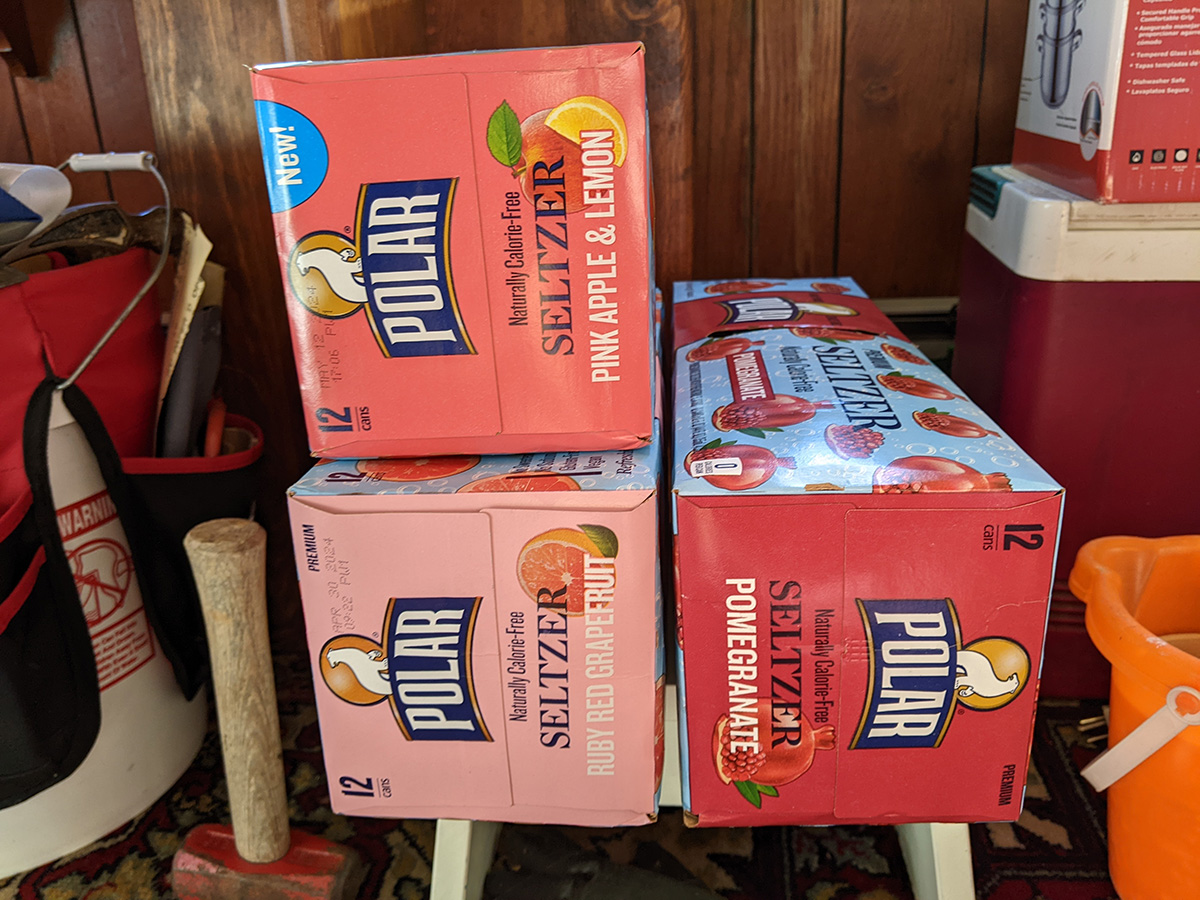 they didn't have any mussels - just clams. i picked up two 12-pack of polar seltzers (ruby red grapefruit and apple lemon, $4.50 each, unlike the 12-pack i got from star market on sunday which was $7). also some jalapeno peppers, cilantro, lobster dip, and hazelnuts. it wasn't yet too crazy, and i managed to check out without any wait.