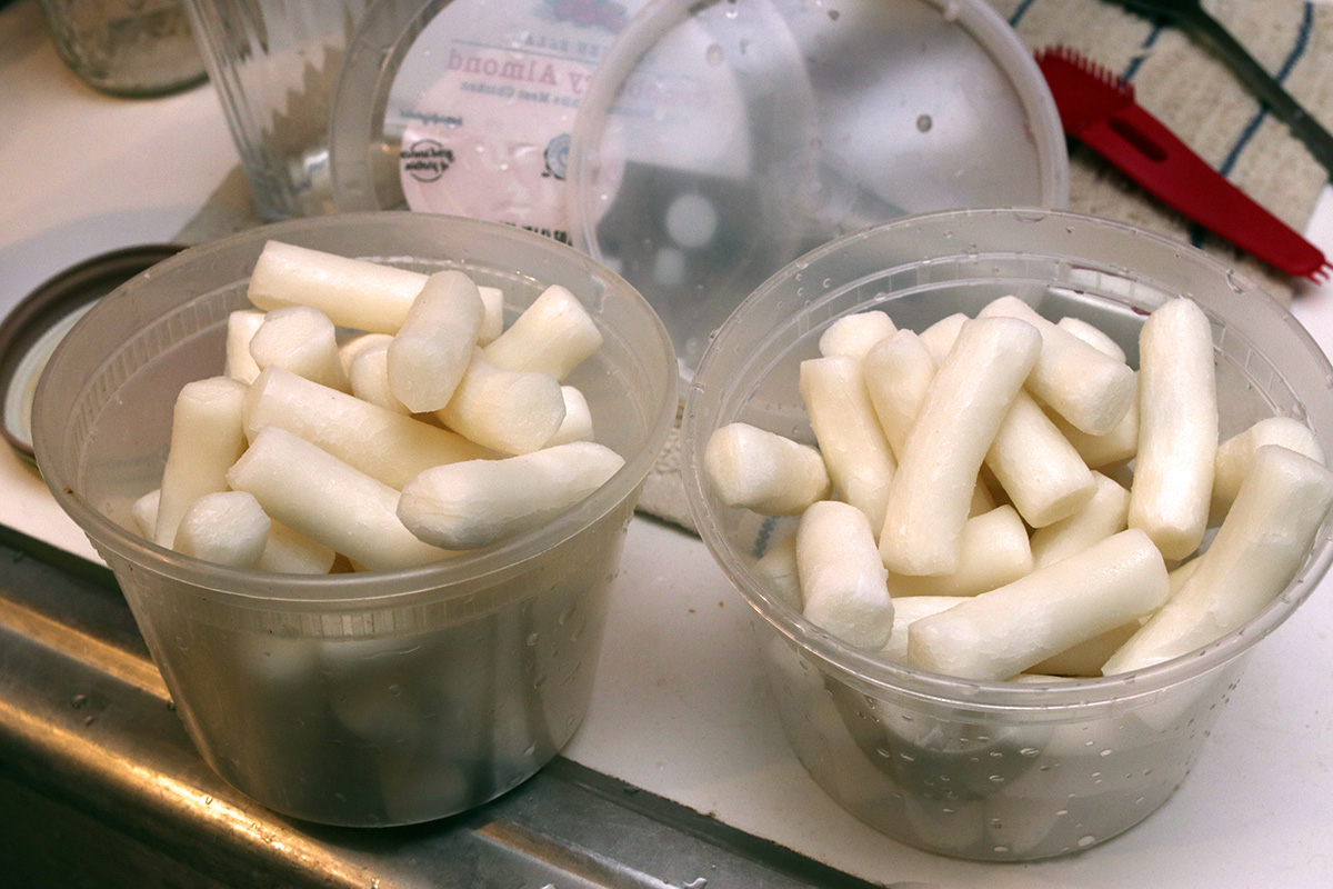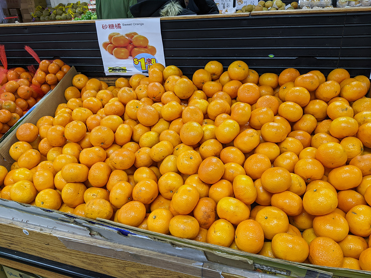 i arrived at c-mart around 2pm. i bought $75 worth of supplies, including chinese celery, garlic chives, shanghai bokchoi, oranges, persimmons, rice noodles, and watermelon seeds. i ended up spending over $75 (using my parents' debit card), which qualified me for a free calendar. i left c-mart 20 minutes later. it took me a while to pack up everything into the rear baskets, making sure the heavy items were on the bottom, while the light items were either on top or in my messenger bag. i also watched the drama that was unfolding outside of c-mart, at the congestion of cars trying to get into the small parking lot, with angry drivers sounding their horns. this is why i only come to chinatown via bicycle, never have to worry about parking.