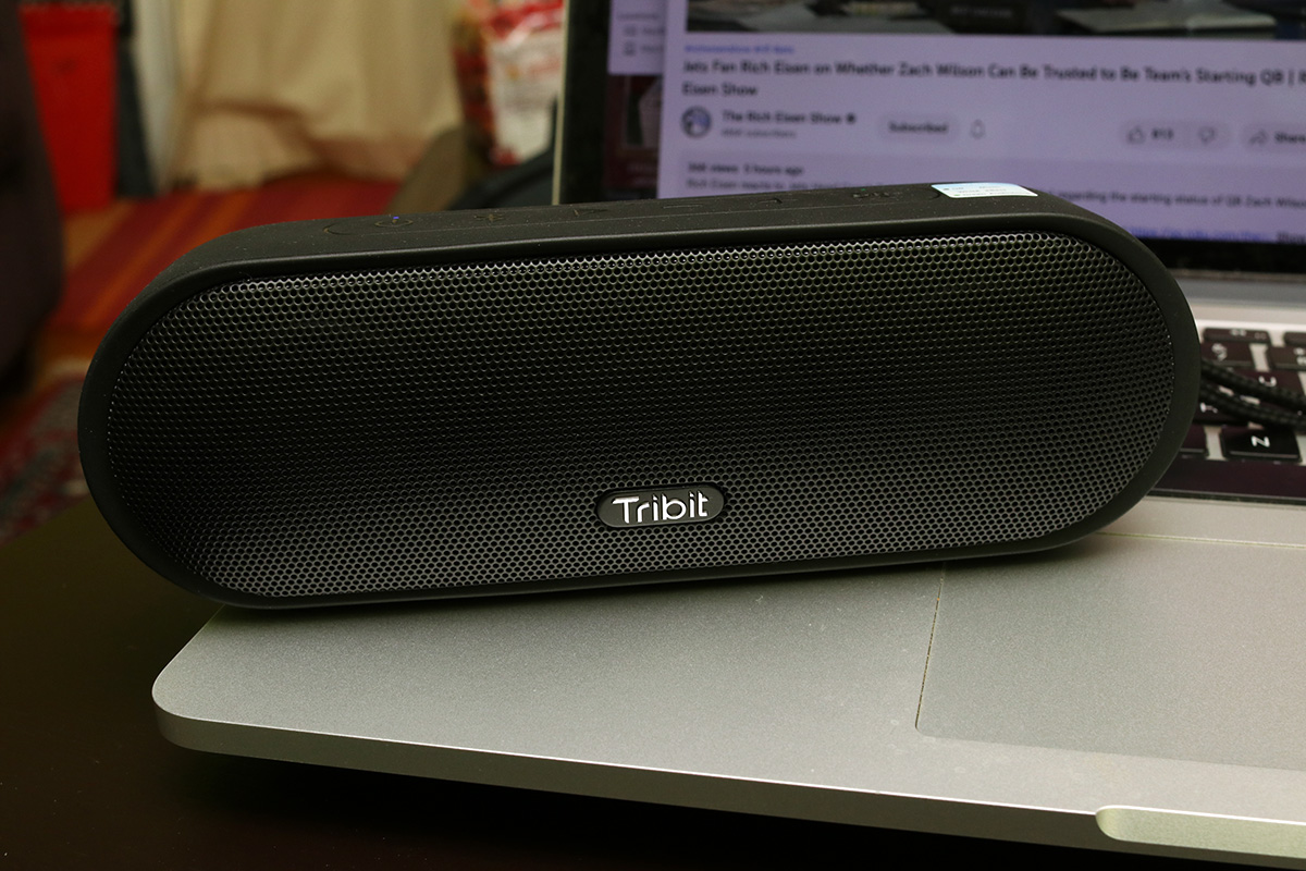 my tribit maxsound plus portable bluetooth speaker arrived today. it's a pretty robust speaker, heavy and substantial feeling. i paired it with my laptop to test it out. it was loud, but it sounded a bit muffled. i wasn't entirely blown away, and i'm now tempted to get the soundcore motion+ just to compare the two.
