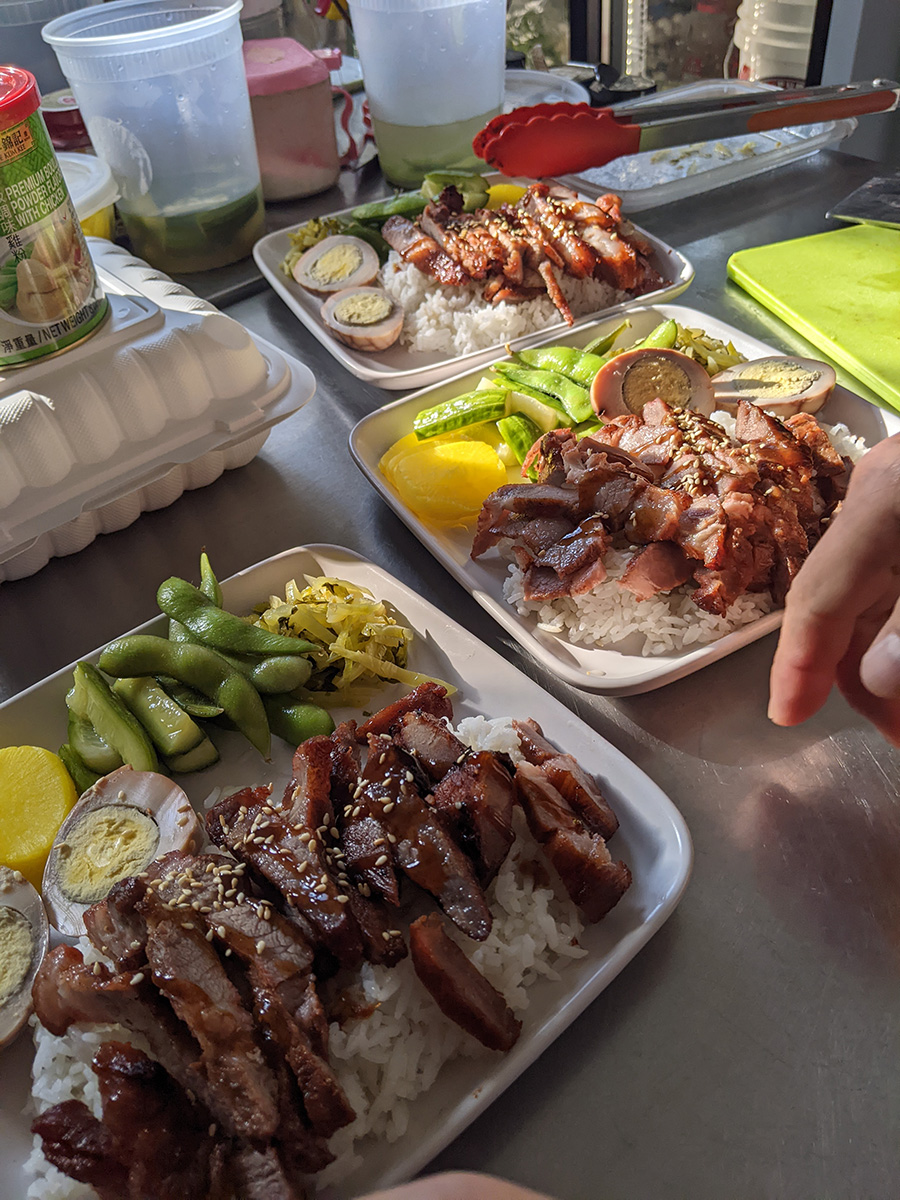 it ended up being a pretty busy day: 9 bento boxes, 2 orders of tea eggs (4 eggs), 9 dumplings, 3 fried rice, 3 taiwanese beef noodles, 2 ramen noodles, and 4 assortment of other noodles. still, business tapered off enough in the late afternoon early evening that i returned home by 5pm.