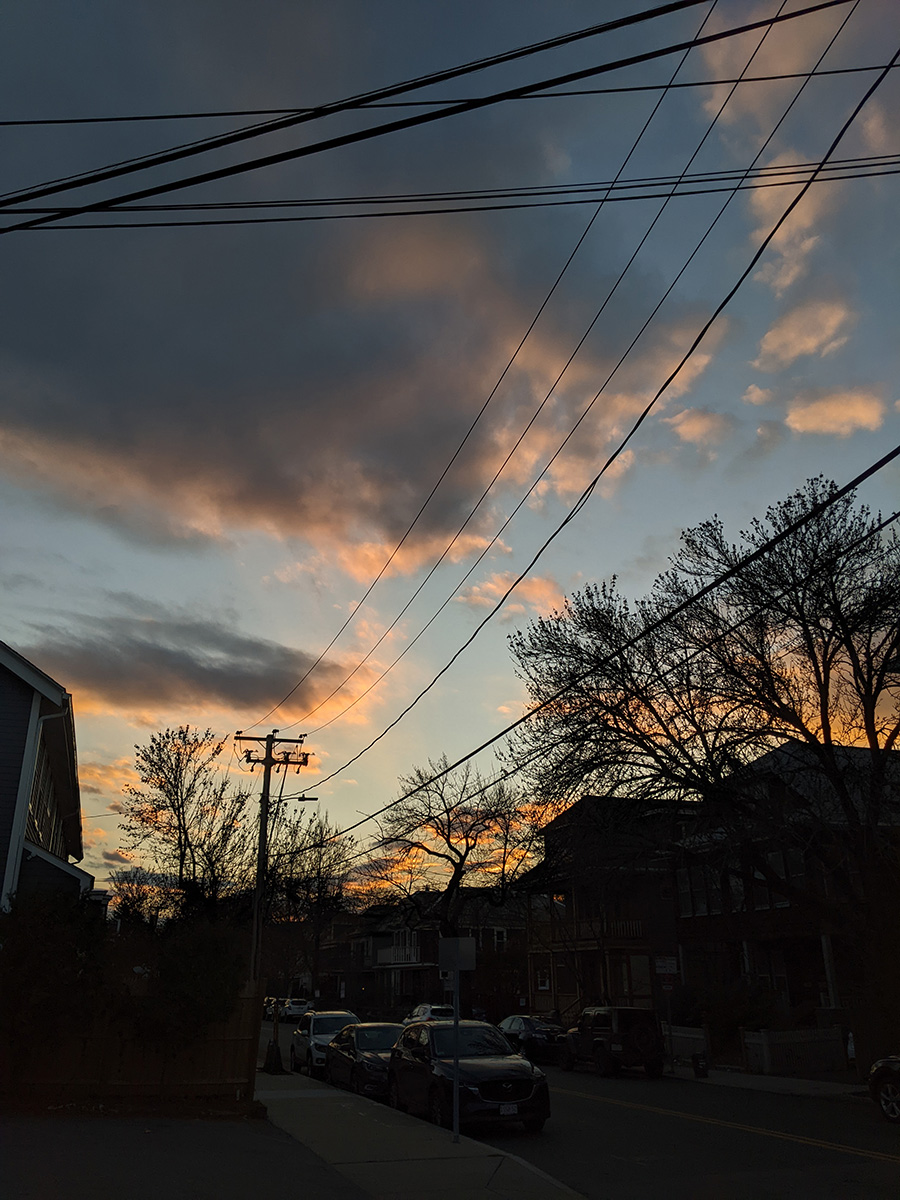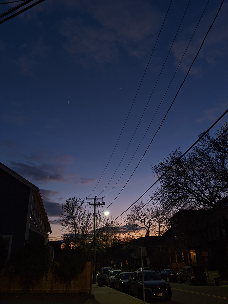 my street was practically empty, a lot of neighbors having left to go visit families for thanksgiving, including my upstairs neighbors. a very quiet night, which is fine by me. i brought in the last of the trash cans.
