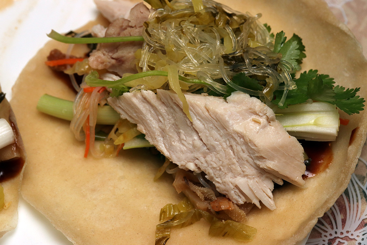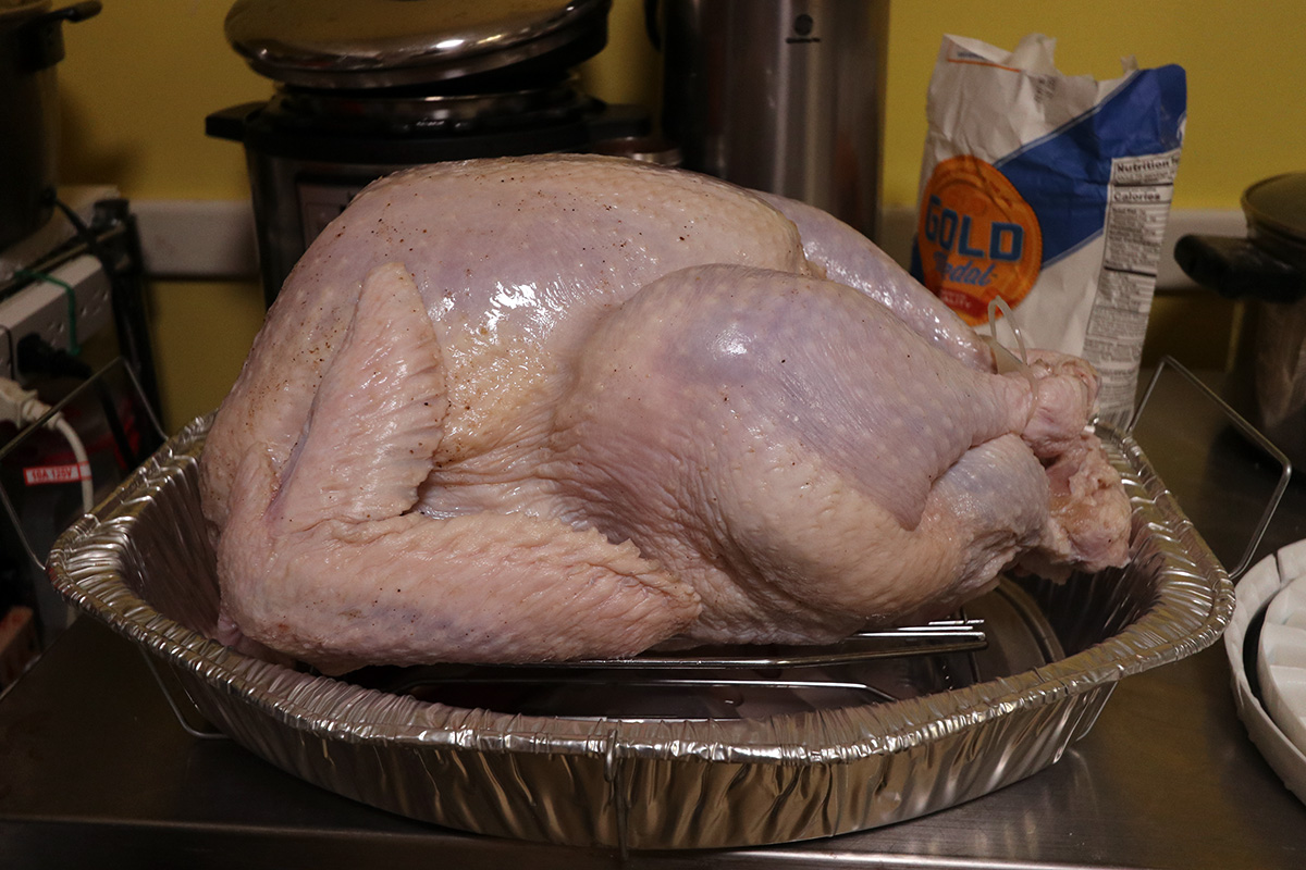 my sister showed up with her godmother and hailey around 4pm. food started showing up on the dining table. my aunt and uncle showed up around 5pm. we hadn't even wrapped the spring rolls yet, although the turkey was done cooking by that point, even though the pop-up turkey timer never popped, which made me afraid the turkey might be undercooked (it wasn't). i've never seen a turkey timer pop in the oven, the only times it happens is when it's out of the oven resting. we kept the turkey in the kitchen, before its grand entrance in the dining area later on.
