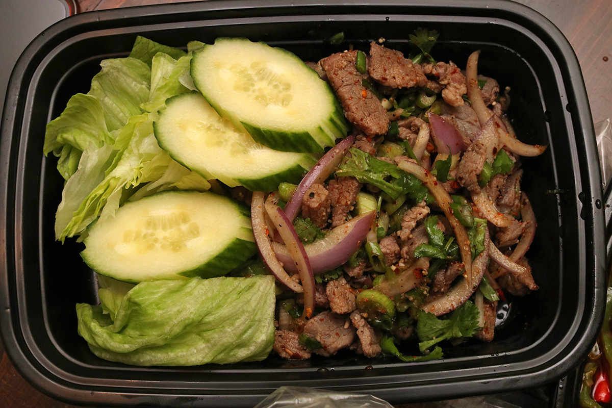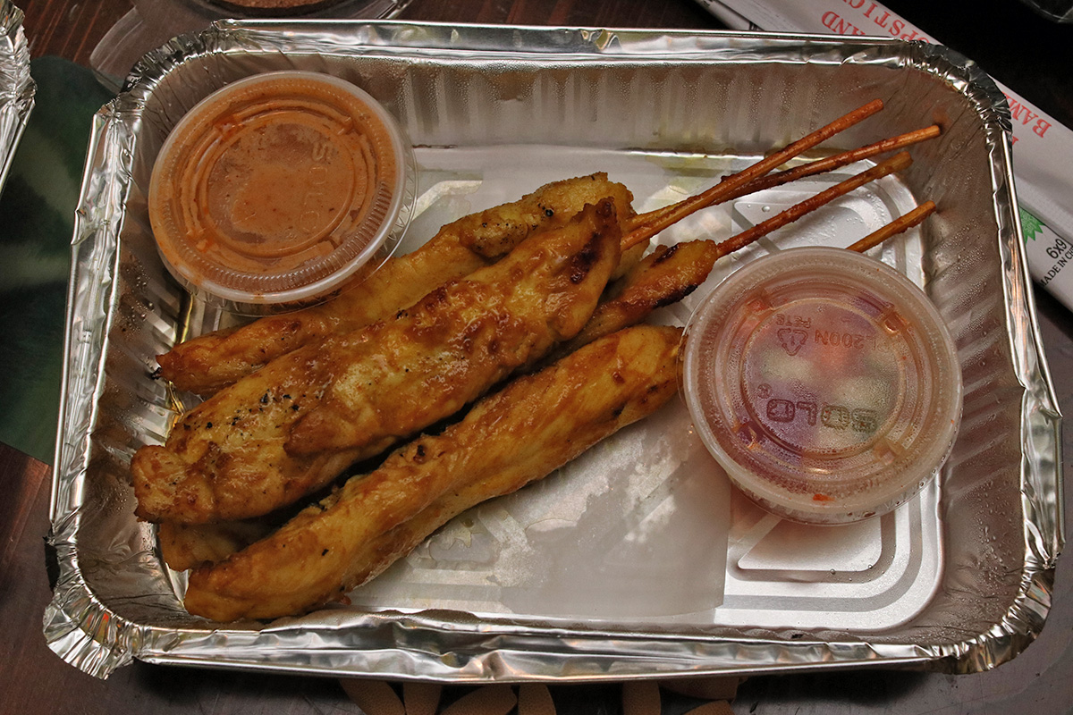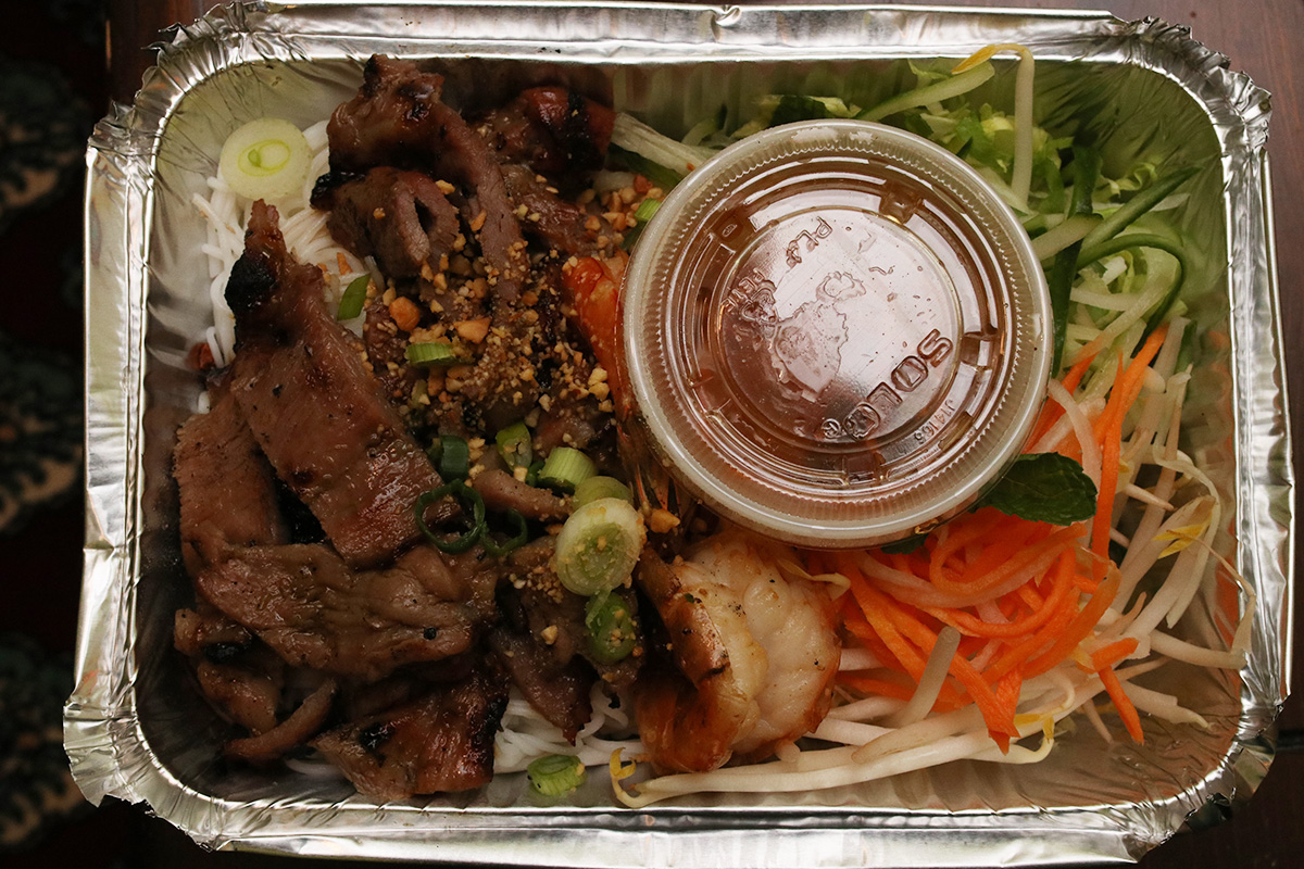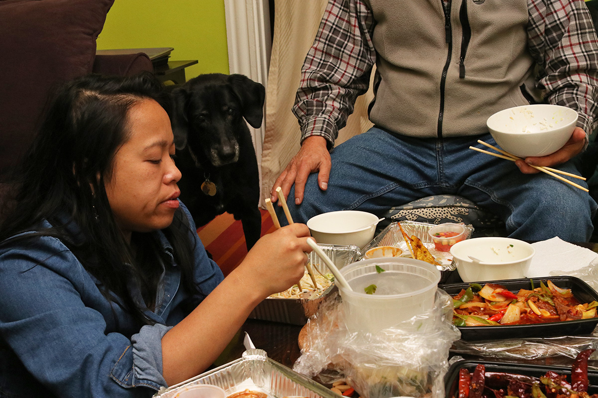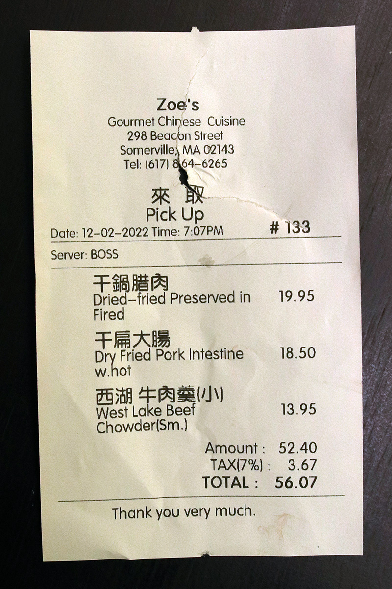 my sister had a birthday dinner at my place last year, where we just got takeouts from the nearby chinese and thai/vietnamese restaurants, so we basically did the same thing, nearly ordering the same dishes as well. my parents arrived first, followed by my sister and her dog. hailey wasn't able to get up the steps on her own so my sister had to carry her. my mother called zoe's to order some chinese dishes, they said there was a 30 minute wait. my father and i then walked down to pho & rice and ordered and paid in person (15-20 minute wait), before going to star market to pick up some more boneless chicken thighs on sale. my father ended up waiting for our orders as i returned home with the raw chicken. i went out later to help him carry the food back. the vietnamese/thai place had our food ready first, followed by our chinese food.