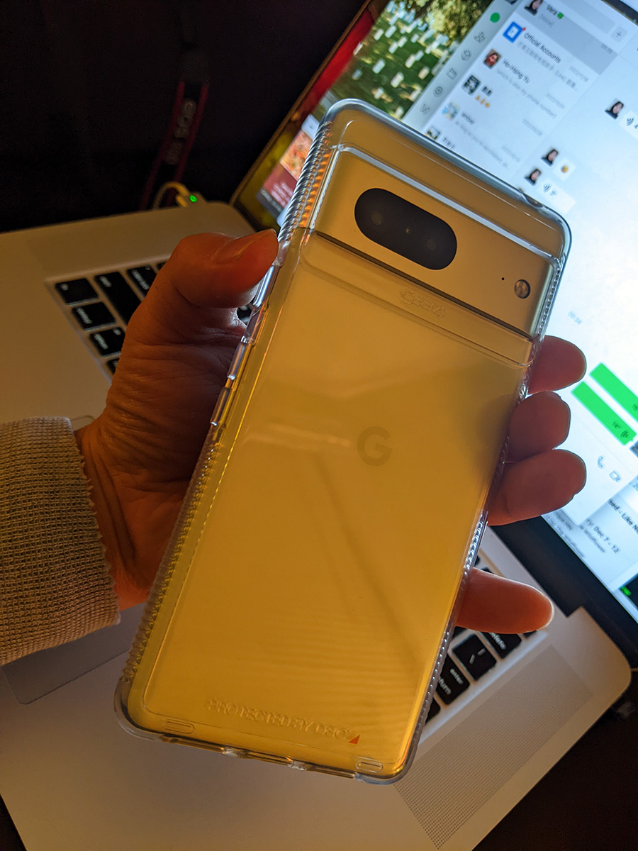 i was going to take a shower, but i started messing with the new pixel 7 phone again, and ended up spending all evening migrating my data from my old pixel phone. the pixel 7 screen protectors arrived yesterday, and the ZAGG crystal palace clear case ($10) arrived today. i thought it was going to be a soft rubber case, but it was actually quite stiff, with a bit of bend. of all the cases i looked at, this one was the most impressive in terms of specs: 13ft drop protection, D3O crystalex material that's pliable but hardens on impact, antimicrobial agent, 50% recycled tritan content, wireless charging compatible, and they plant a tree with every purchase.