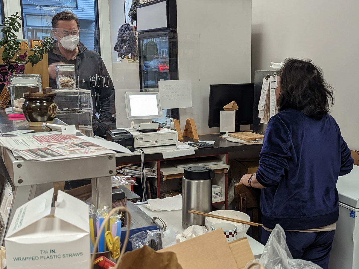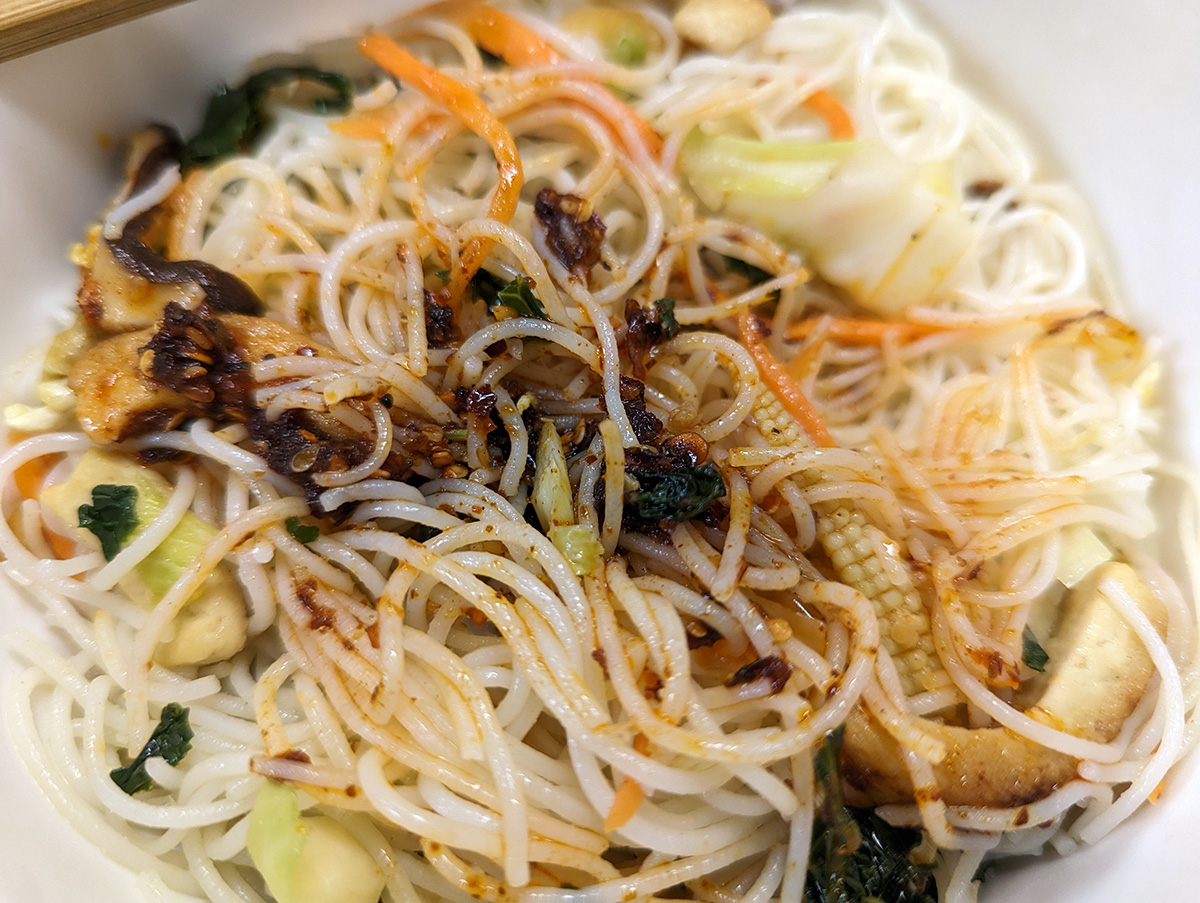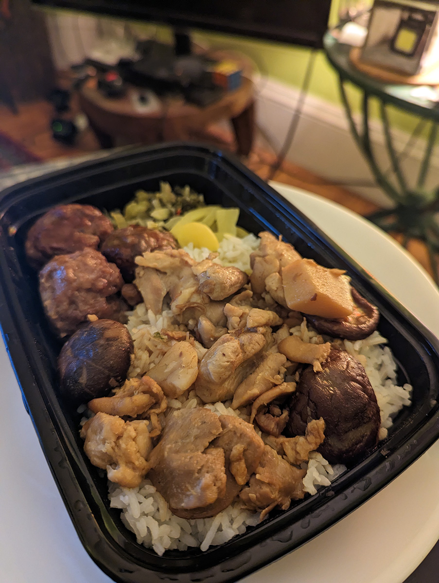 my aunt is still testing positive for covid (though that second positive line takes longer to appear) so matthew once again came to pick up their catered food order. if it wasn't for the catered food, there wouldn't have been much business today, about the same as yesterday, which wasn't a lot. nevertheless, we managed to sell 6 vegetable buns, 6 bento boxes, 2 pad thai, and 7 beef noodle soup, which has gained in popularity now that the weather is starting to turn cold.