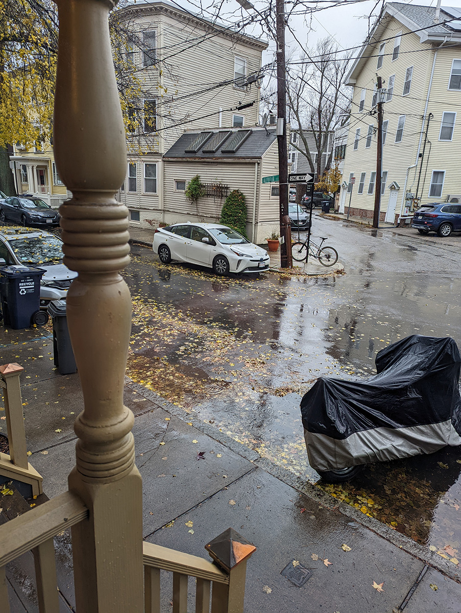 i went down to the cafe in the late morning for my wednesday shift. i decided to walk because it was raining, but it wasn't raining at the time, and i briefly thought about taking the bike, but i checked the forecast and it said there'd be more rain later today, so safer just to walk instead of having to ride in the pouring rain.